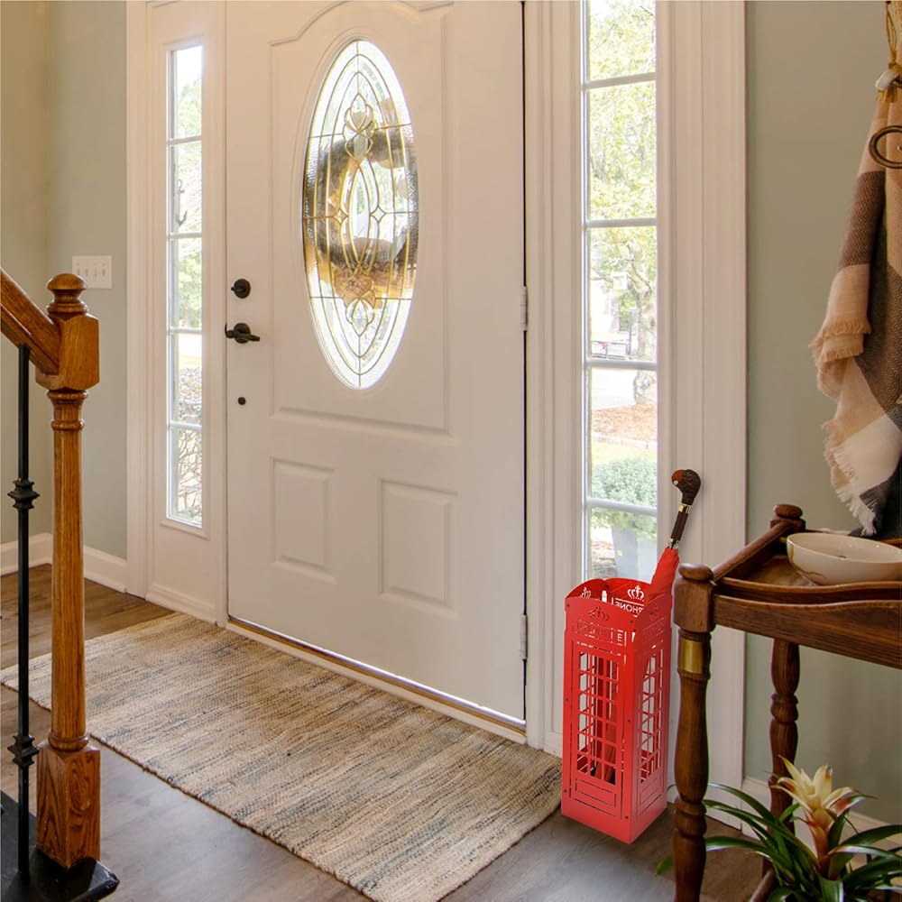 أنيق وعصري: يتميز حامل المظلة بزخارف هندسية رائعة تمزج بسلاسة بين الجمال والأداء الوظيفي. تصميمها المفتوح يسهل تدفق الهواء، مما يسمح للمظلات المبللة بالجفاف بسرعة ويمنع العفن والعفن الفطري. لقد قمنا بتضمين صينية تصريف مياه تكميلية تحافظ على جفاف الأرضية، مما يعزز من فائدتها.