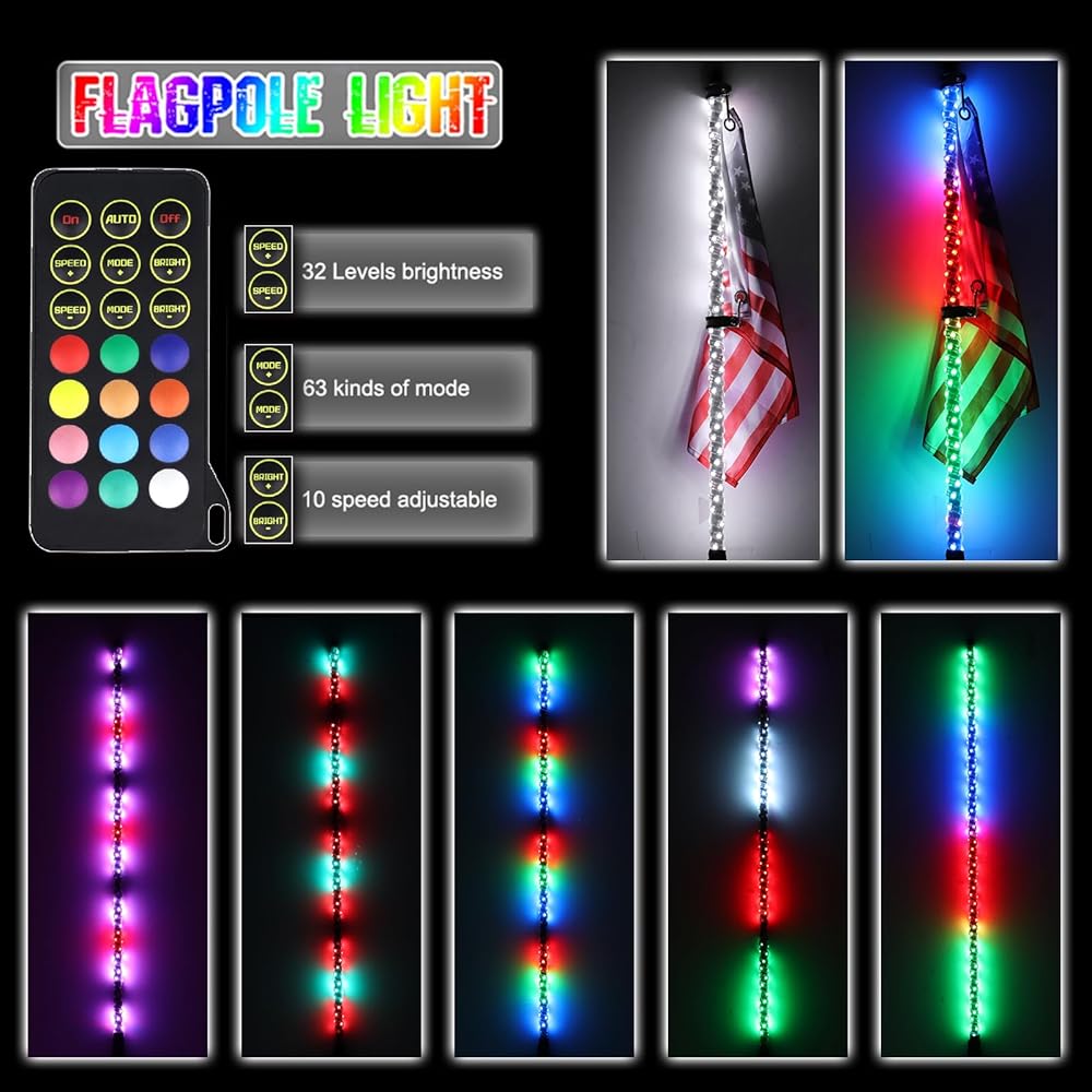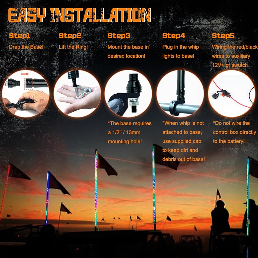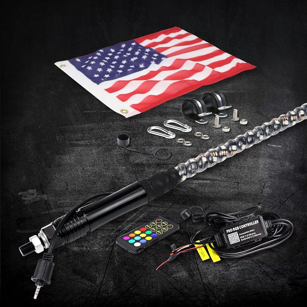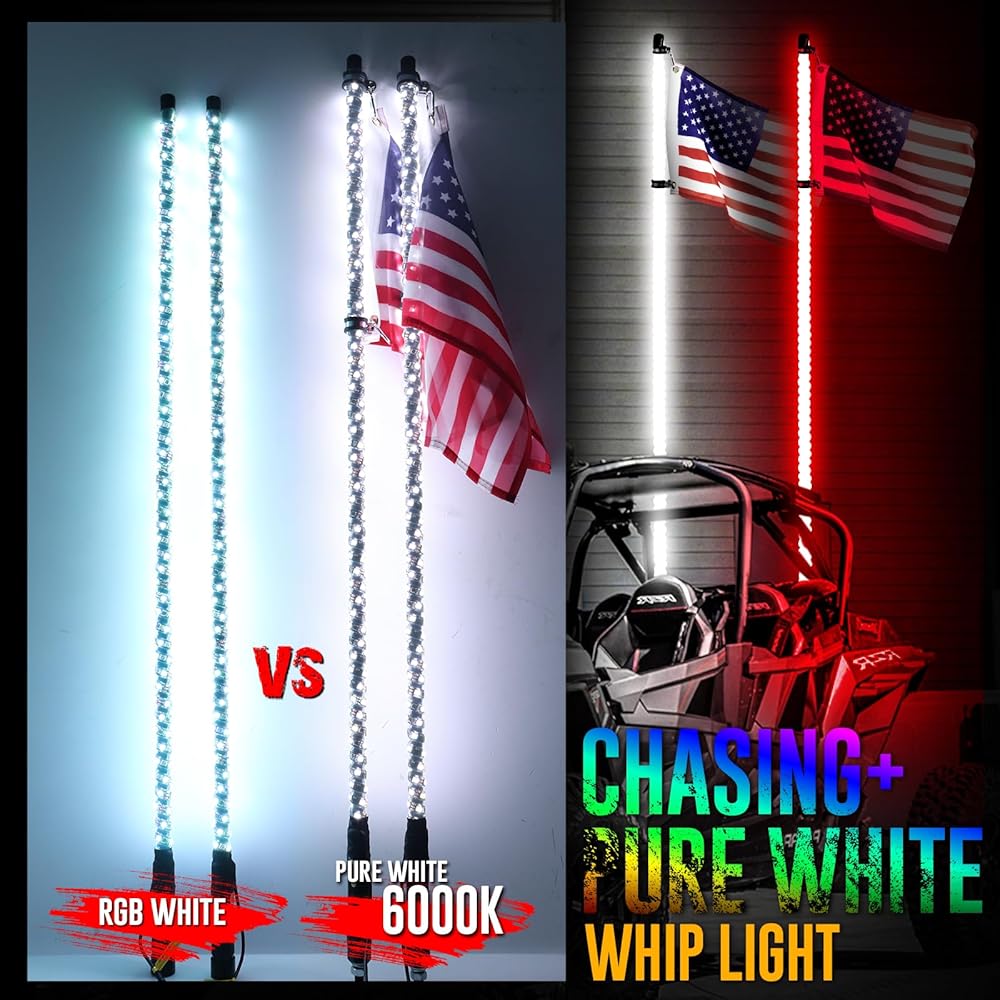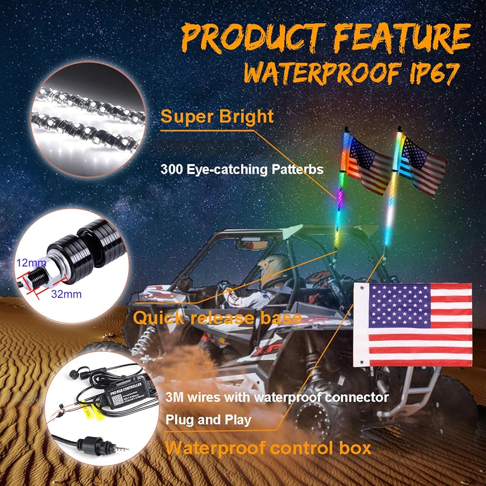 سياط LED عالمية للشاحنات، وATV، وUTV، وRZR، وCan-am، وDune Buggy، وسكك الرمل، والمزيد - تركيب مرن في أي وضع بغض النظر عن الطراز والطراز