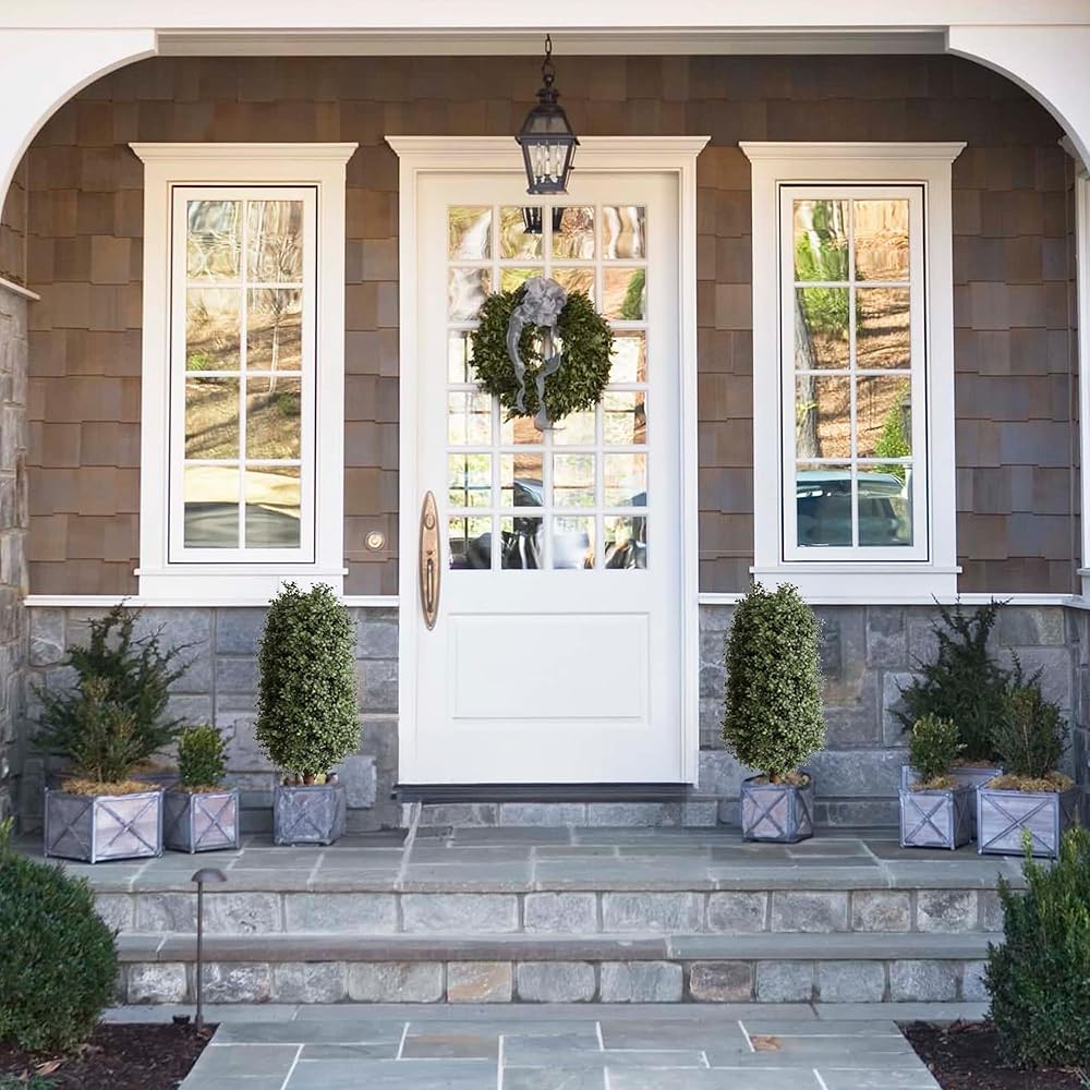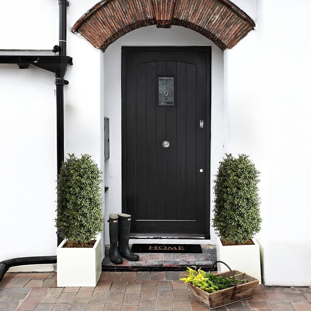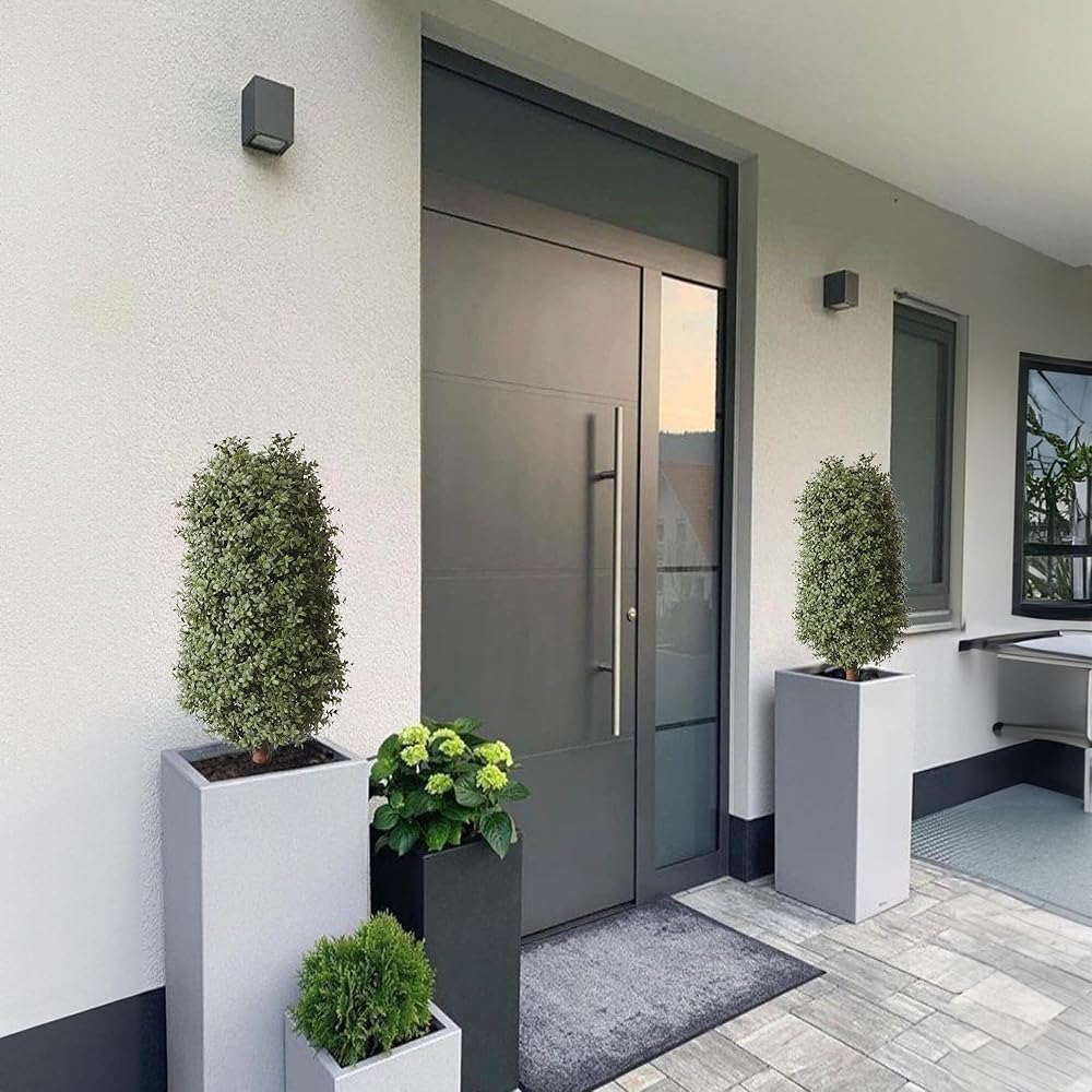 The faux boxwood shrubs boast a lifelike appearance, with intricately designed leaves that capture the glossy, dark green hue characteristic of real boxwoods. These artificial plants exude a sense of perpetual vibrancy, maintaining their impeccable aesthetic appeal throughout the seasons.