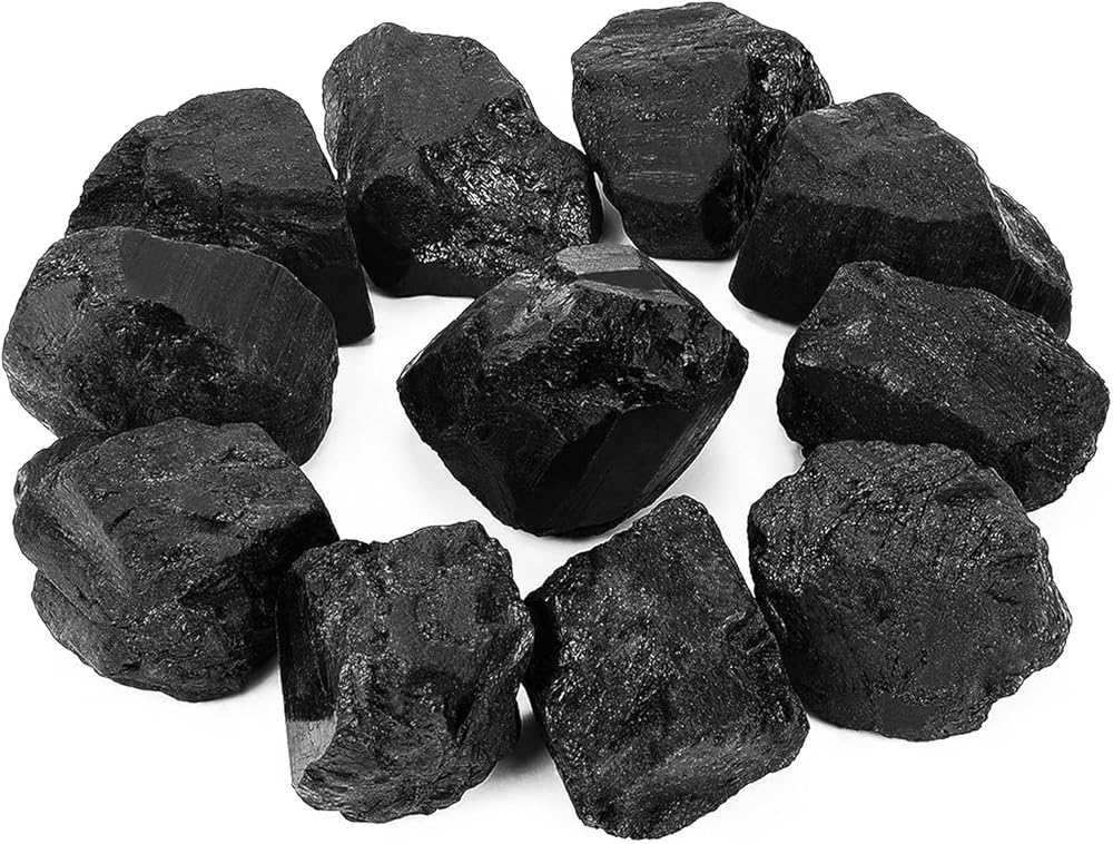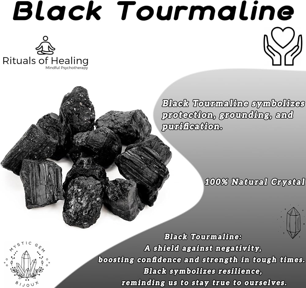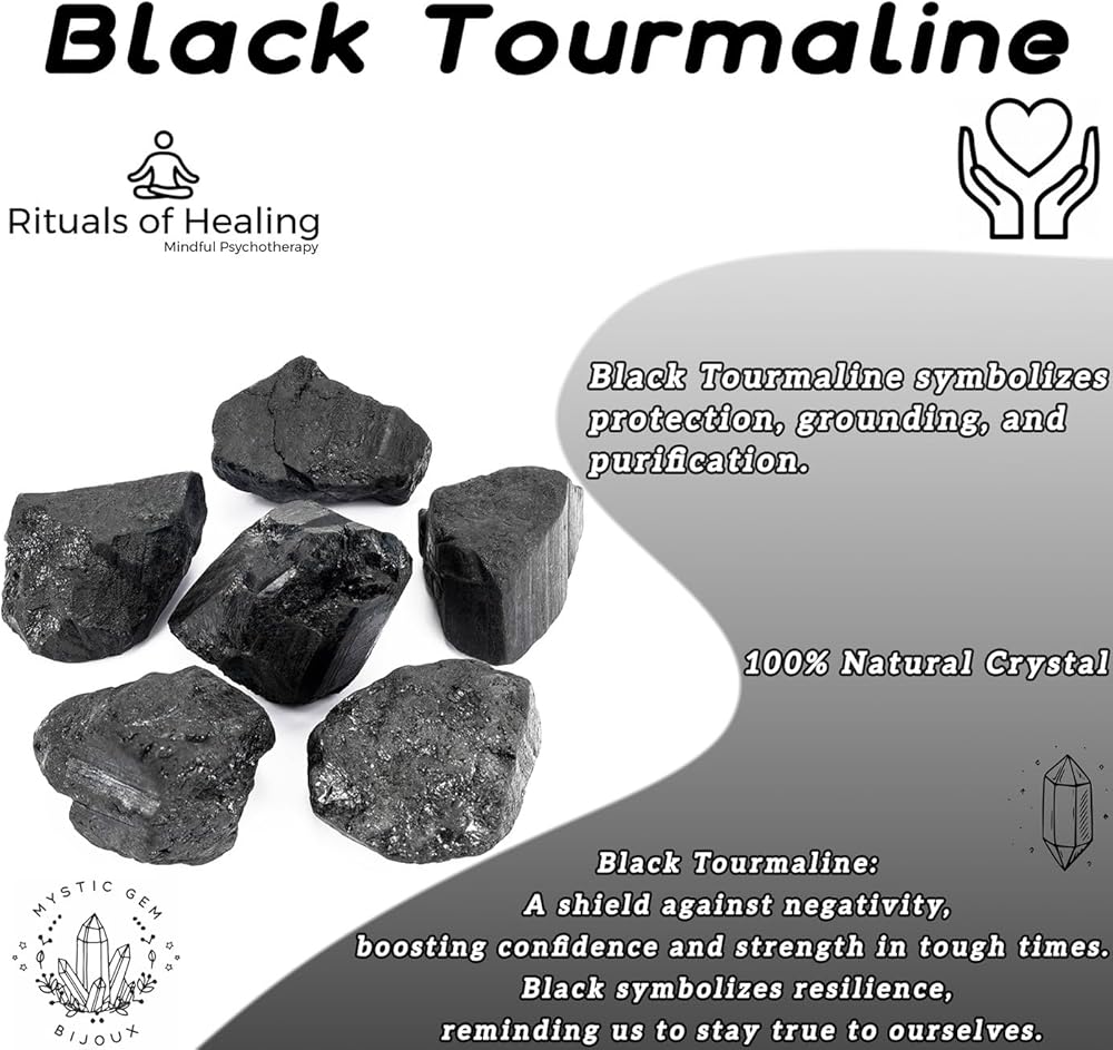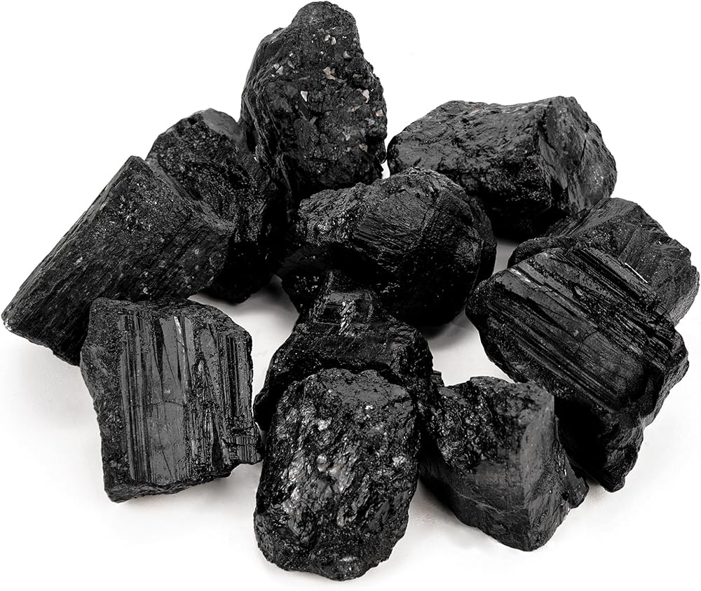 مجموعة بلورات التورمالين السوداء من MAIBAOTA، بلورات شفاء طبيعية من حجر الكريستال بوزن 1 رطل لتهدئة وتنقية الطاقة، حجر خام غير منتظم للسقوط والتلميع وتغليف الأسلاك واليكا والريكي