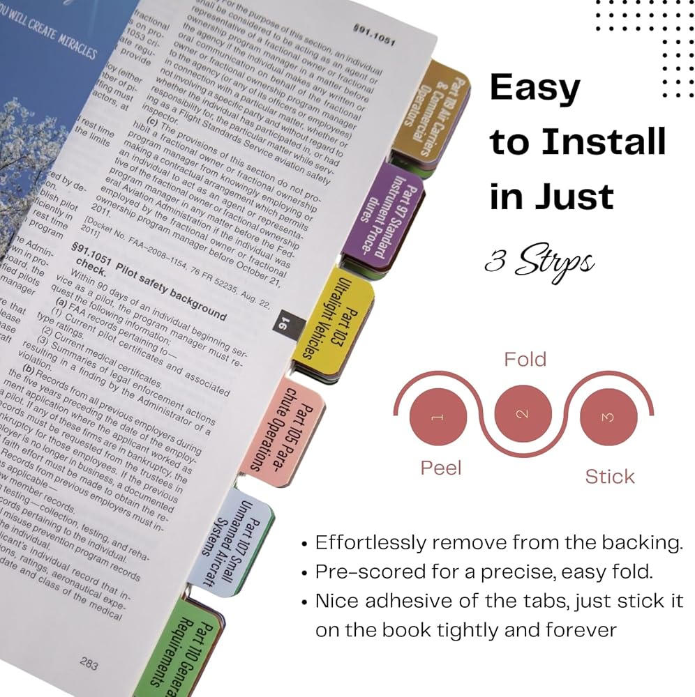 【Comprehensive Coverage】: Updated for 2024, these 100 tabs are carefully crafted to spotlight the crucial sections of the FAR/AIM book. With 90 pre-printed tabs and 10 blank tabs, you can easily mark your favorites and important areas.