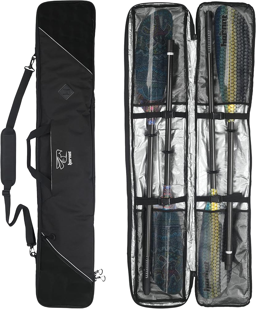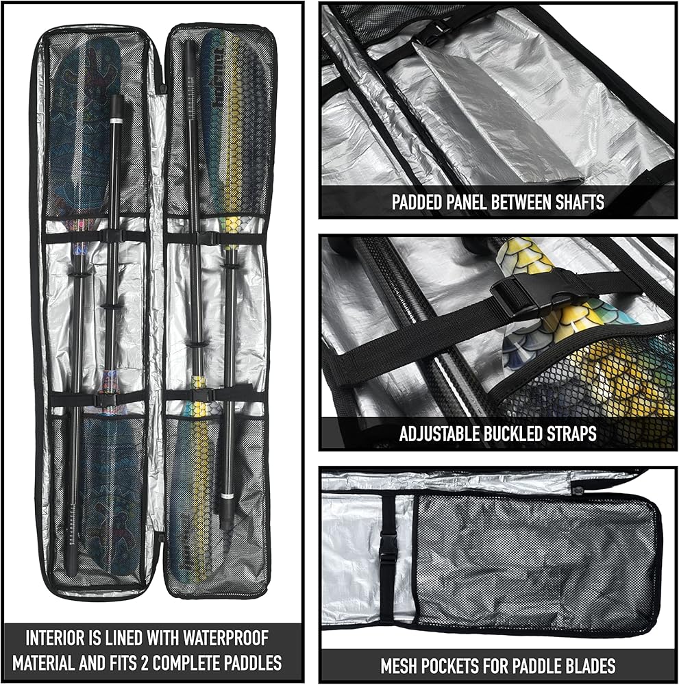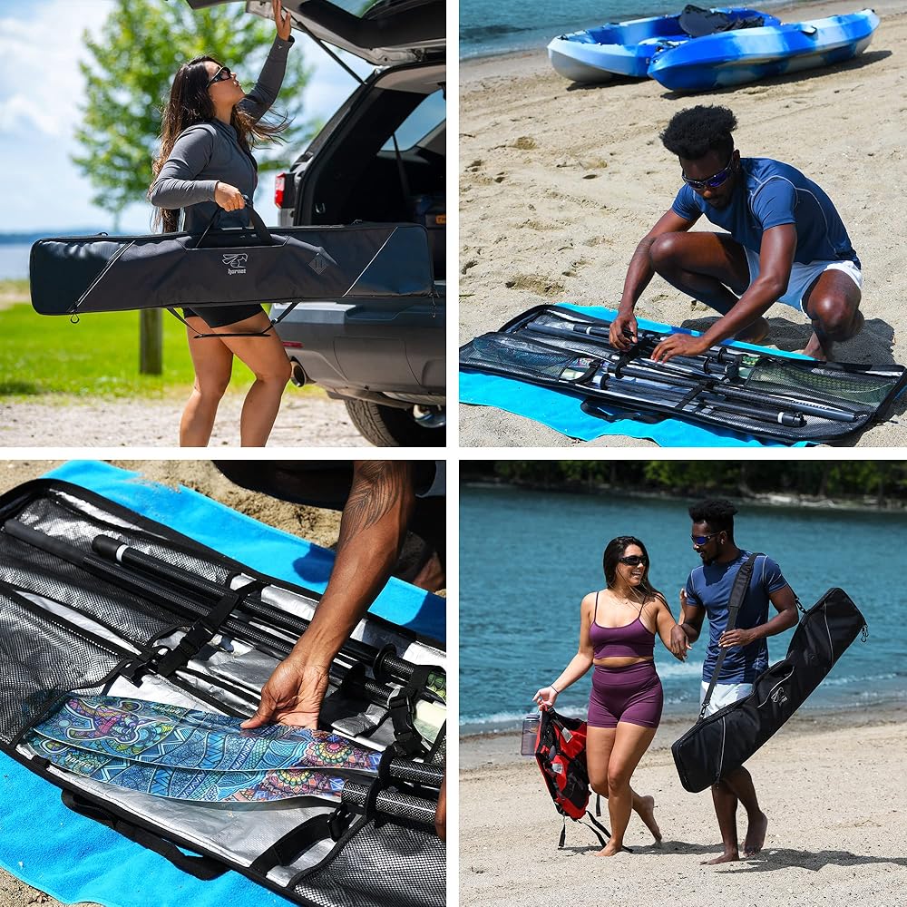 اخرج إلى الماء في كثير من الأحيان: حقيبة مجداف الكاياك الخاصة بنا هي وسيلة سهلة ومريحة لنقل مجدافك. إنها تناسب وتخزن وتحمي مجدافين بشكل مريح، لذا احصل على صديق وابدأ مغامرة التجديف في الهواء الطلق.