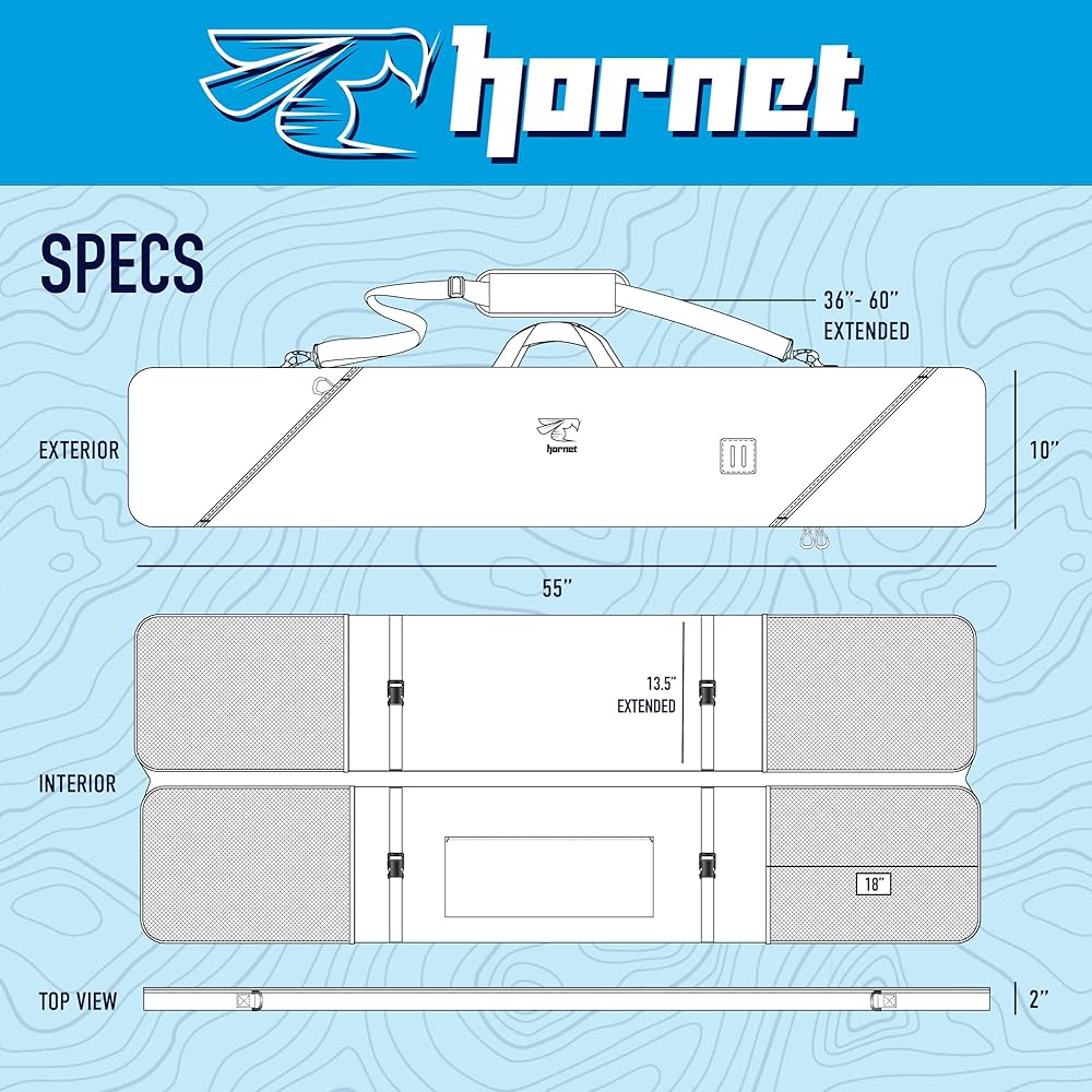 الحجم الصحيح: بطول 55 بوصة، تم تصنيع حقيبة مجداف Hornet kayak من مزيج من البوليستر المتين والمقاوم للماء 600D والبوليستر المطلي. تتم إضافة حشوة طفيفة لحماية إضافية. تناسب معظم مجداف هورنيت، بيرسيبشن، بيليكان، فيرنر وأكثر من ذلك.