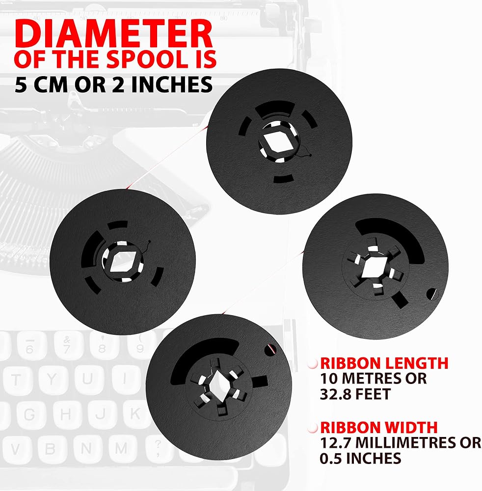 Spool Diameter: The diameter of the spool is 2 inches or 5 centimeters. This is the most universal typewriter ribbon spool sizes!