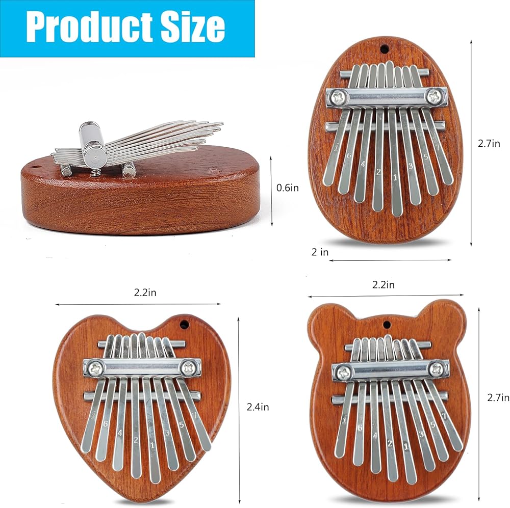The mini kalimba is designed with 8 keys, each keyboard is printed with corresponding musical notes, convenient for distinguishing