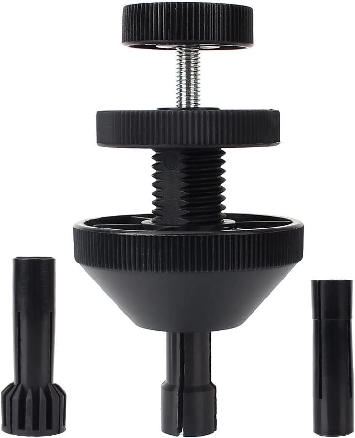 Thread the funnel wheel onto the centre body, with ribs facing the same direction as those on the fixed wheel that is the smooth side of the wheel facing away from the fixed wheel. Select the suitable collect, depending on clutch size, and slide onto the centre shaft. Insert centre shaft and collect through centre body and thread small wheel onto the end of the shaft.