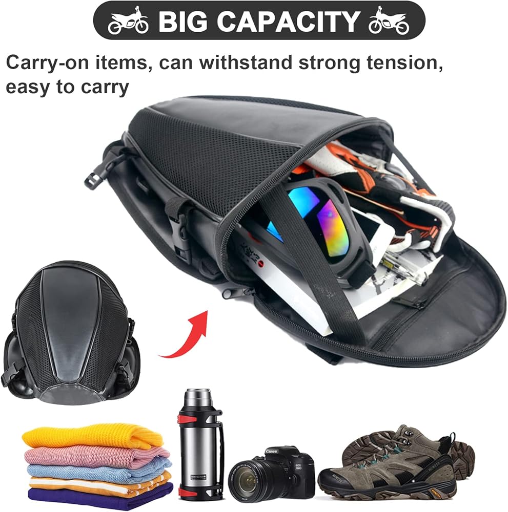 【حقيبة المقعد الخلفي للدراجة النارية】تناسب معظم الدراجات النارية / الدراجة الترابية / الرياضة المزدوجة / إندورو. يمكن استخدامها كحقيبة خلفية للدراجة النارية، وحقيبة كتف وحقيبة يد.