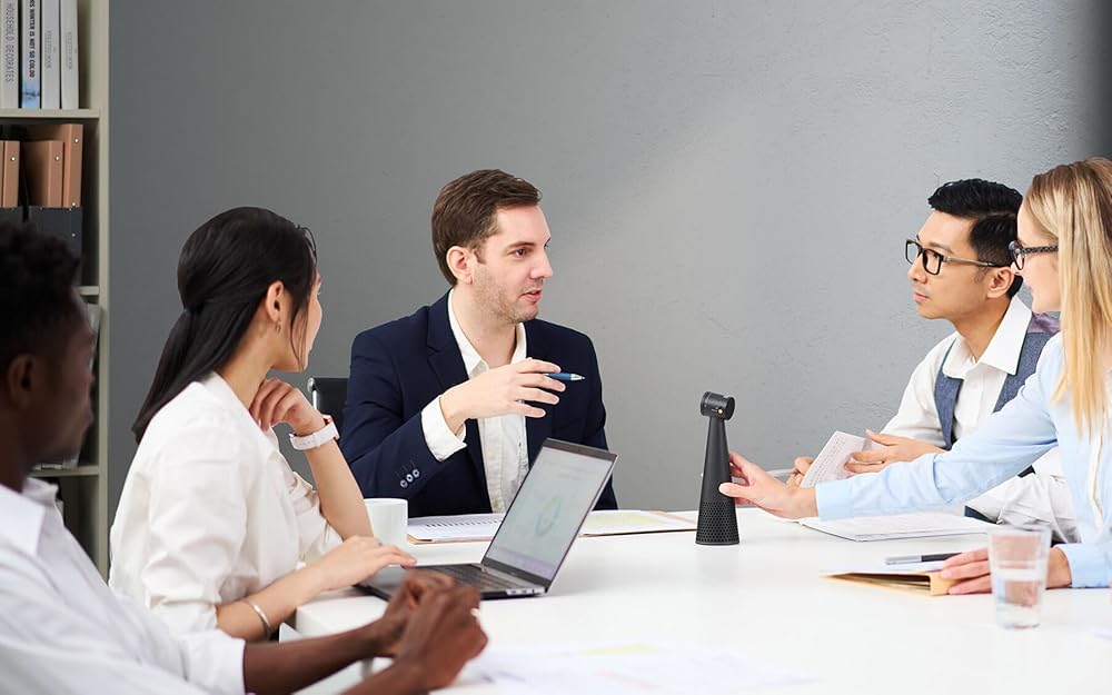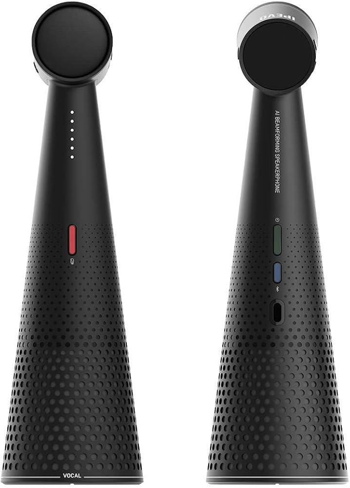 COMMUNICATE WITH CONFIDENCE: With VOCAL you will not feel the urge to lean closer to the speakerphone. It captures sound from the current speaker at a natural distance and height or stands in the center of the conferencing table and thanks to its two beamforming microphones equipped with AI noise reduction technology reliably captures the voices of all participants.