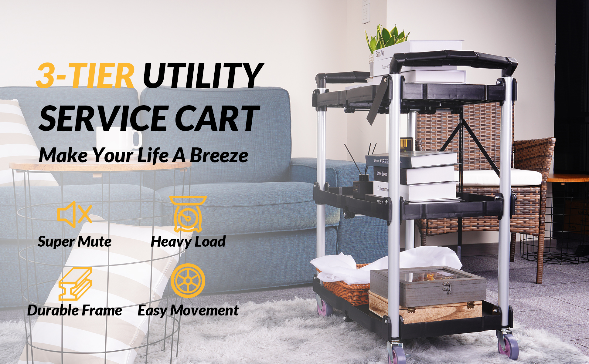 【Quality Material】Made from thick PP trays and lightweight aluminum framing, ensuring durability and longevity. Additionally, the rubber-lined handles make for comfortable daily use. It's the perfect service cart for anyone looking for a sturdy and reliable way to transport items.