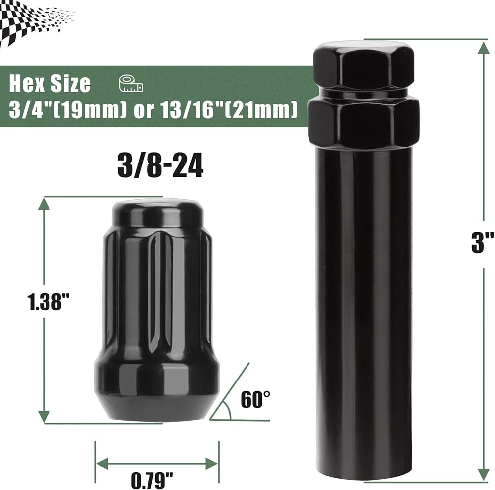 【المواصفات: صواميل ذات نهاية مغلقة ATV 12 × 1.5، طول 1.38 بوصة (35 مم)، عرض 0.79 بوصة (20 مم)، مقعد مدبب 60 درجة. يأتي مع مفتاح مقبس سداسي مقاس 3/4 بوصة (19 مم) و13/16 بوصة (21 مم).