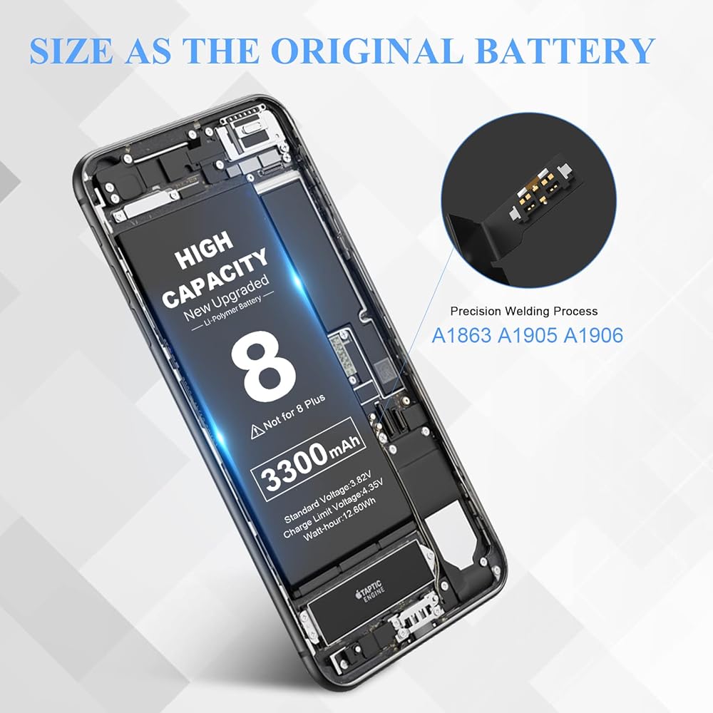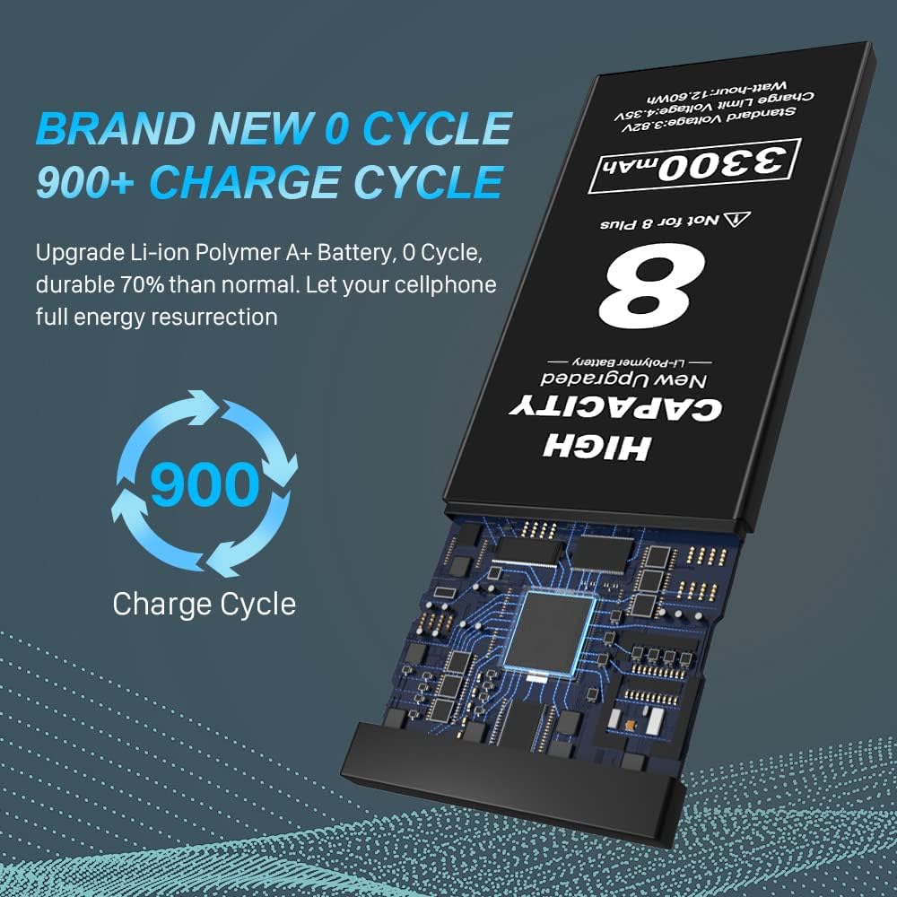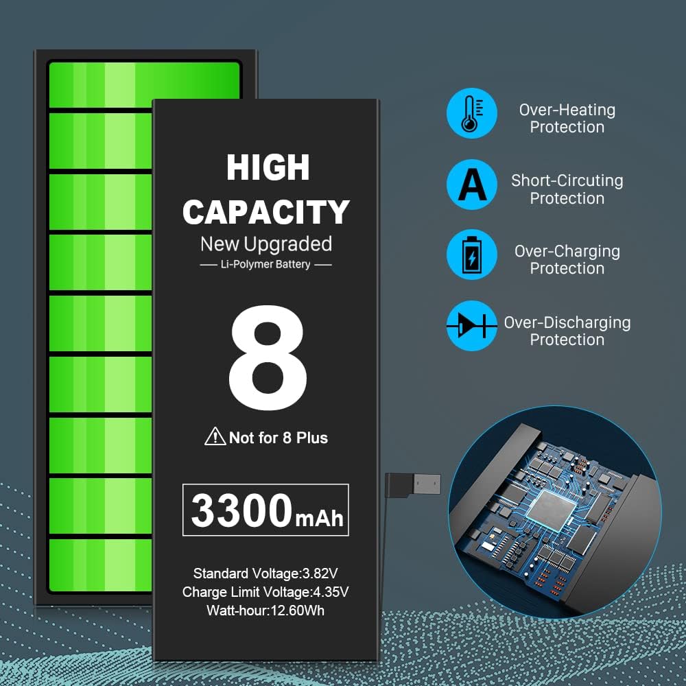 بطارية WAVYPO لهاتف iPhone 8، 3300 مللي أمبير في الساعة، بطارية بديلة مطورة ذات سعة عالية جديدة 0 دورة لهاتف iPhone 8 A1863 A1905 A1906، بطاريات احتياطية مع أدوات إصلاح كاملة
