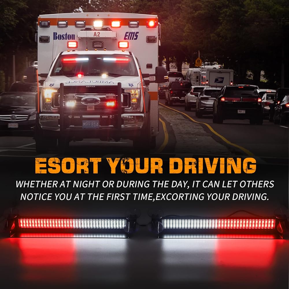 【تنسيق قيادتك】أضواء سيارات الطوارئ 2 في 1 مشرقة جدًا. حتى خلال النهار، تكون هذه الأضواء الوامضة مرئية للسائقين، ومن المؤكد أنها ستلفت انتباه حركة المرور القادمة، مما يجعلك أنت والآخرين أكثر أمانًا على الطريق.