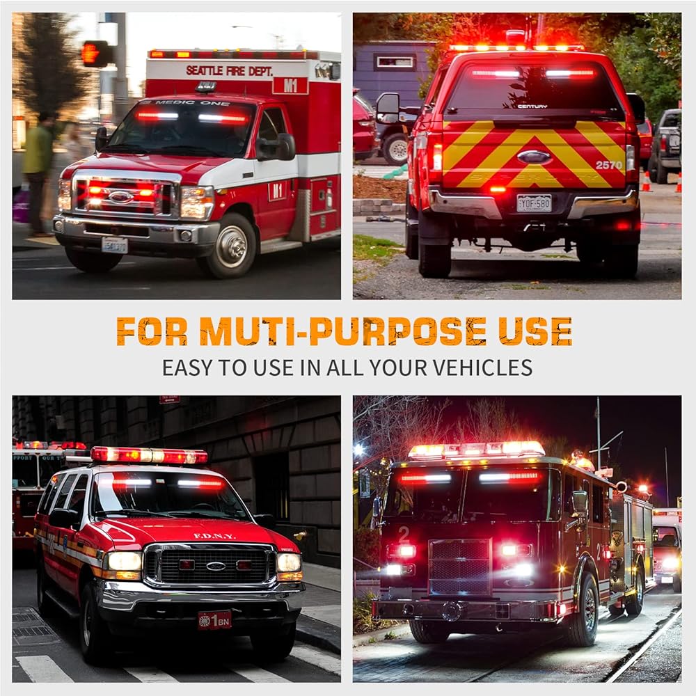 【استخدام متعدد الأغراض】تعتبر مصابيح الزجاج الأمامي القوية رائعة لمركبات الطوارئ، والخدمات التطوعية، وسيارات إنفاذ القانون، والمستجيبين الأولين، ومركبات البناء، وتحذير السلامة، ومحاريث الثلج، والبريد وما إلى ذلك.