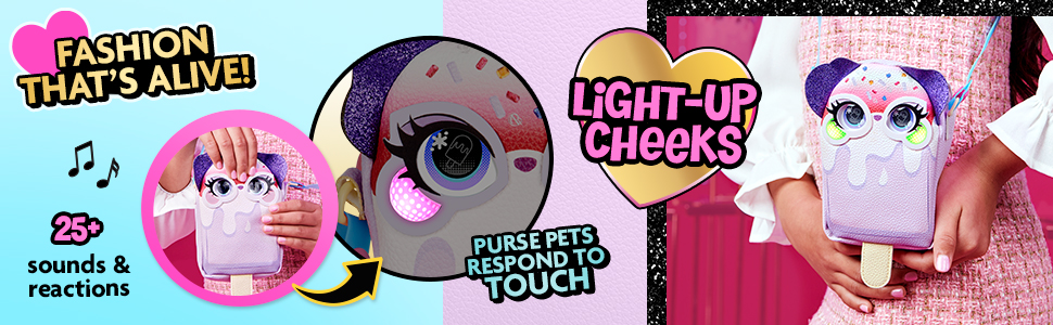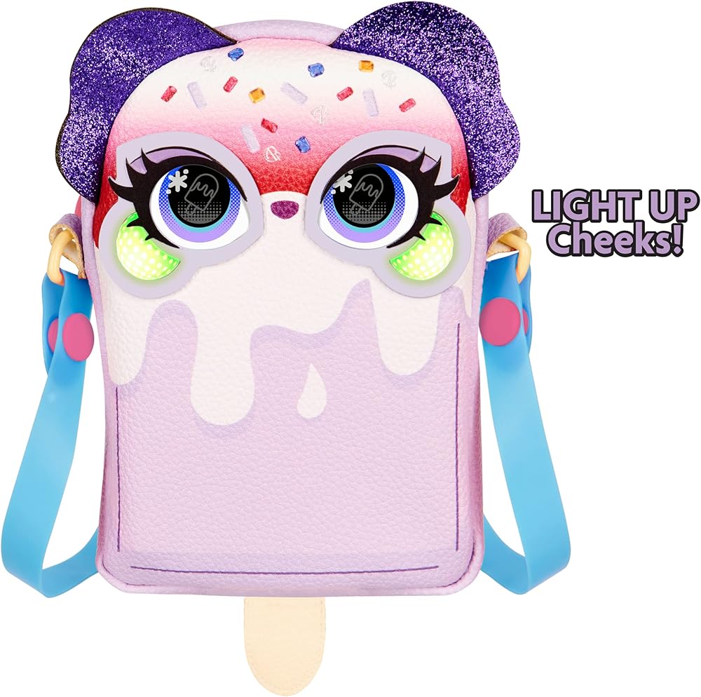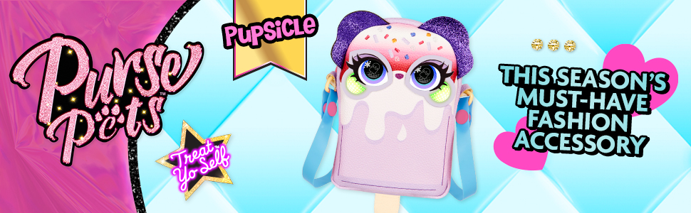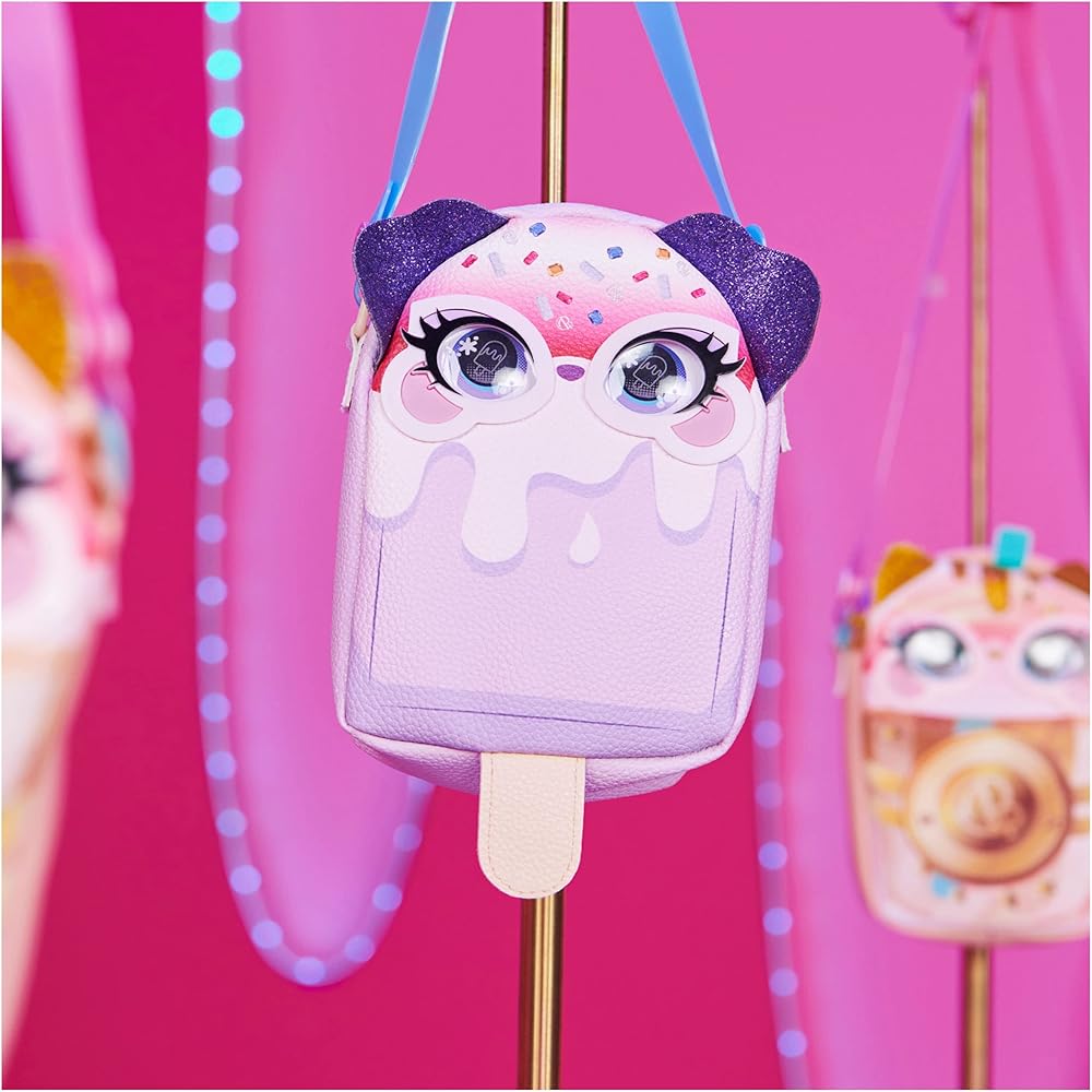 محفظة تفاعلية للحيوانات الأليفة والأطفال: مظهر Pupsicle الفريد من نوعه، والجلد الصناعي المرصوف بالحصى، والأذنين اللامعة، والعيون الفنية البوب، وحزام الهلام والشكل الرأسي تجعل محفظة Purse Pets kawaii هذه هي الإكسسوار المثالي للحيوانات الأليفة والأزياء! لا يومض.