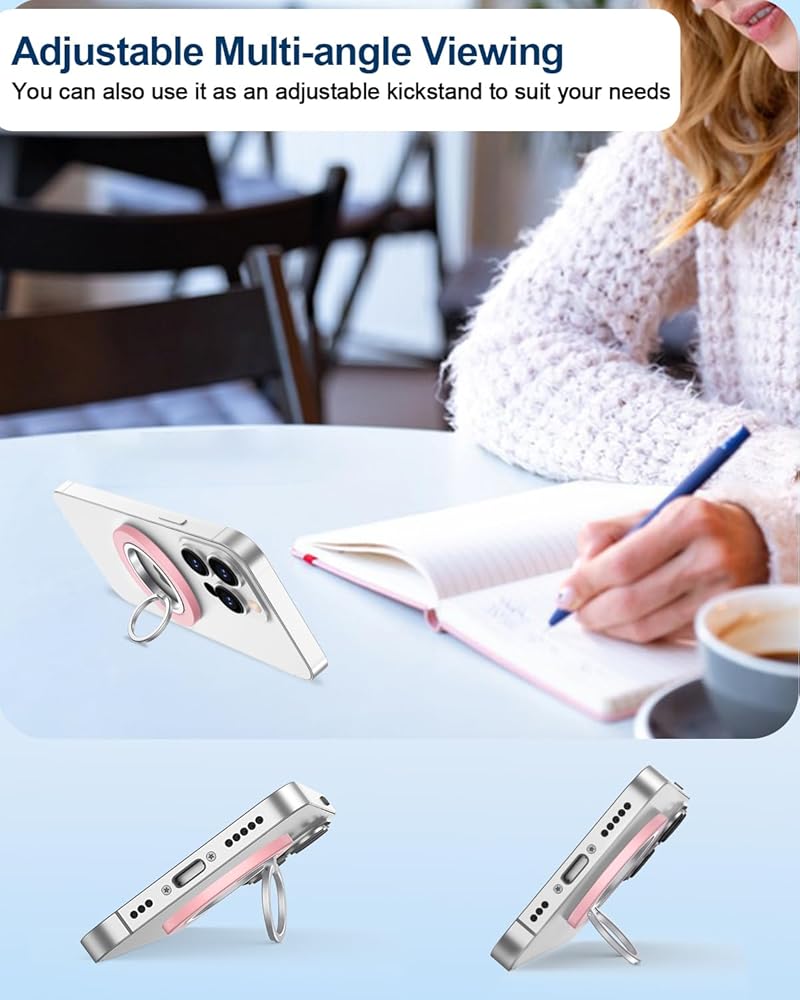 【دوران داخلي مضاد للخدش 360 درجة وقلب 100 درجة 】يحتوي مقبض الهاتف المغناطيسي هذا على حامل حلقة قابل للدوران 360 درجة وقلب قابل للتعديل 100 درجة، مما يجعله قبضة أصابع مرنة ومريحة دون إيذاء أصابعك؛ وهذا أيضًا يوفر مسند عرض متعدد الزوايا قابل للتعديل حسب حاجتك على الطاولة أو الأسطح المسطحة الأخرى؛ وتوجد حافة مرتفعة أسفل الجزء الدوار، لمنع هاتفك الثمين أو الجراب من الخدش عند تدوير حامل الحلقة على ظهر هاتفك/جرابك