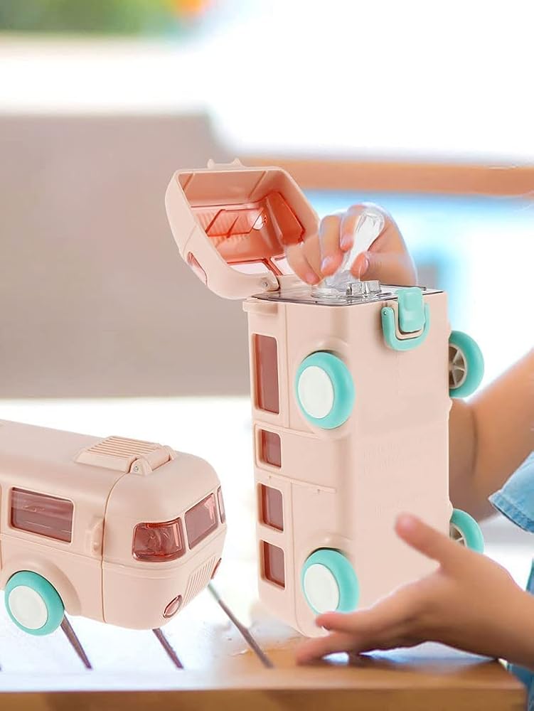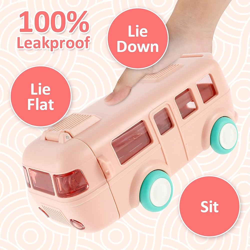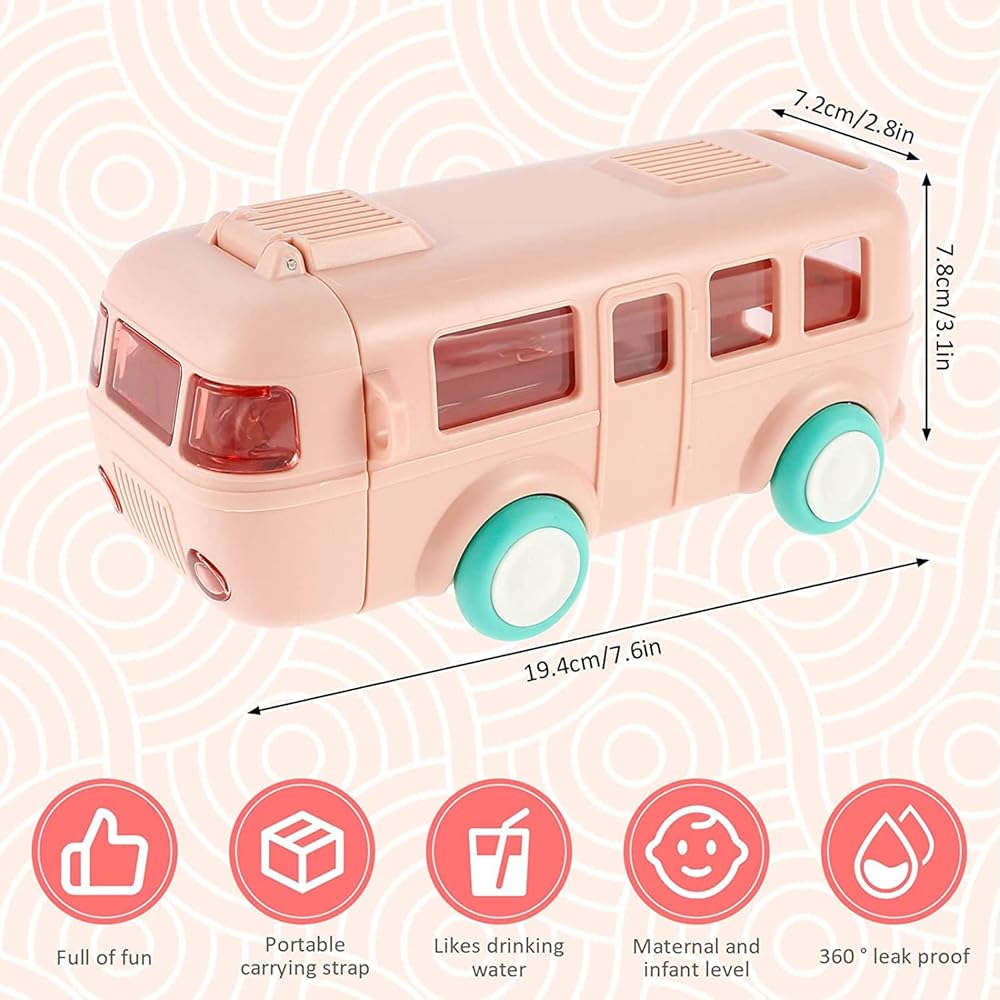 زجاجة مياه للحافلة بسعة 16 أونصة من Rubrab للأطفال مع قش وحزام، مانعة للتسرب، خالية من مادة BPA، قابلة لإعادة الاستخدام، لعبة إبريق ماء للحافلة قابلة للفصل للمدرسة، سفر رياضي للبنين والبنات (وردي)