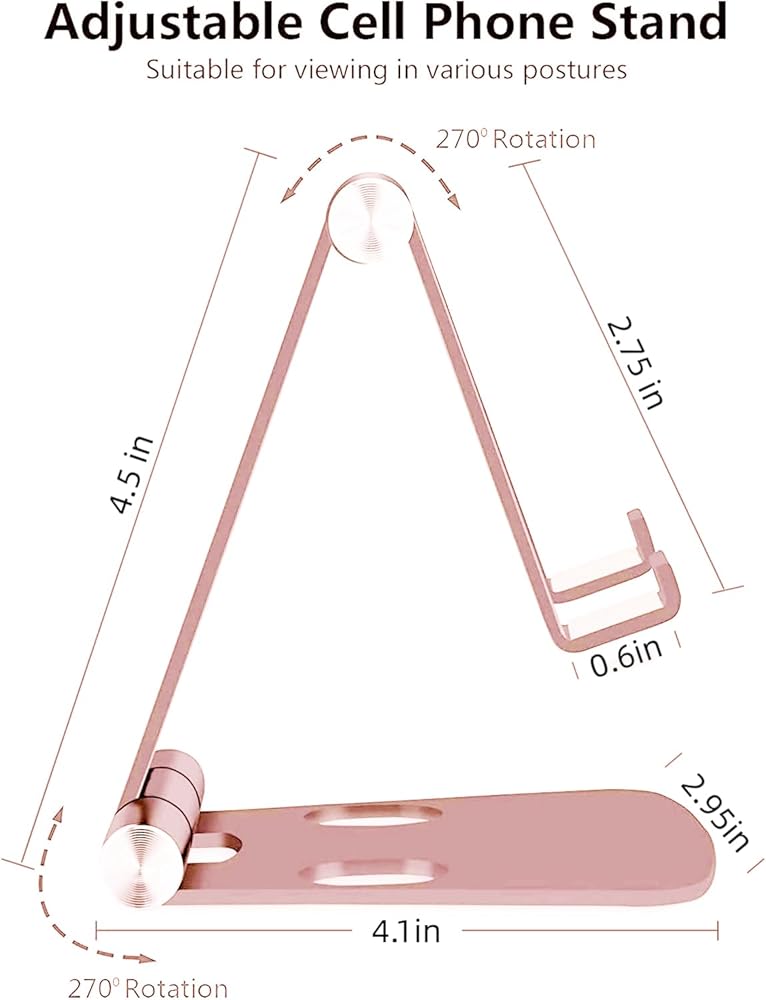 【قوي للغاية وغير قابل للانزلاق】: مصنوع من معدن الألومنيوم القوي الفاخر، حامل الهاتف الوردي الخاص بنا مصمم ليدوم طويلاً. تعمل الوسائد المطاطية غير القابلة للانزلاق على القاعدة والظهر على حماية جهازك ومكتبك من الخدوش والانزلاق.