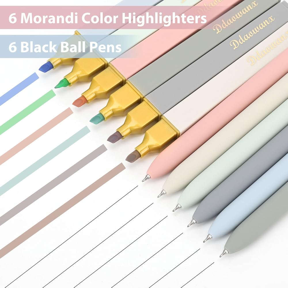 • 【تتضمن العبوة】: 6 أقلام تحديد باستيل و6 أقلام جل حبر سوداء جمالية. ألوان مختلفة وكمية كافية تلبي استخدامك اليومي والاستبدالات.