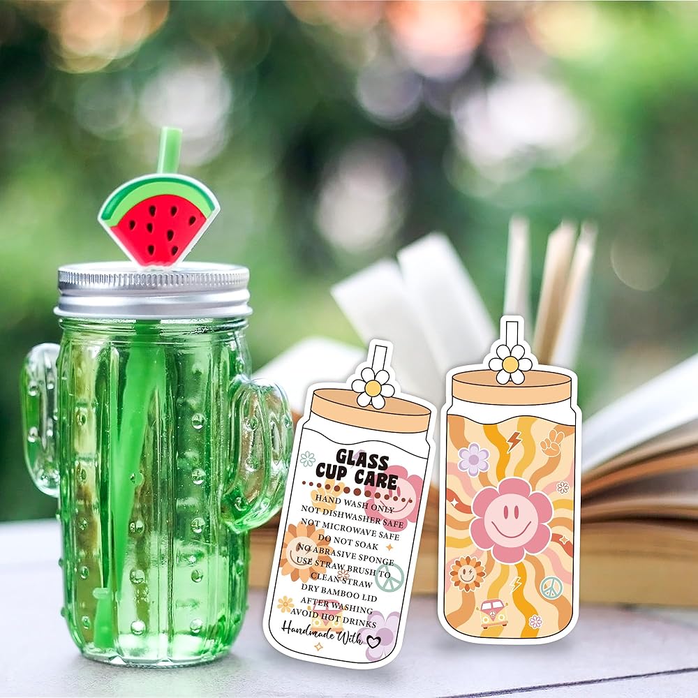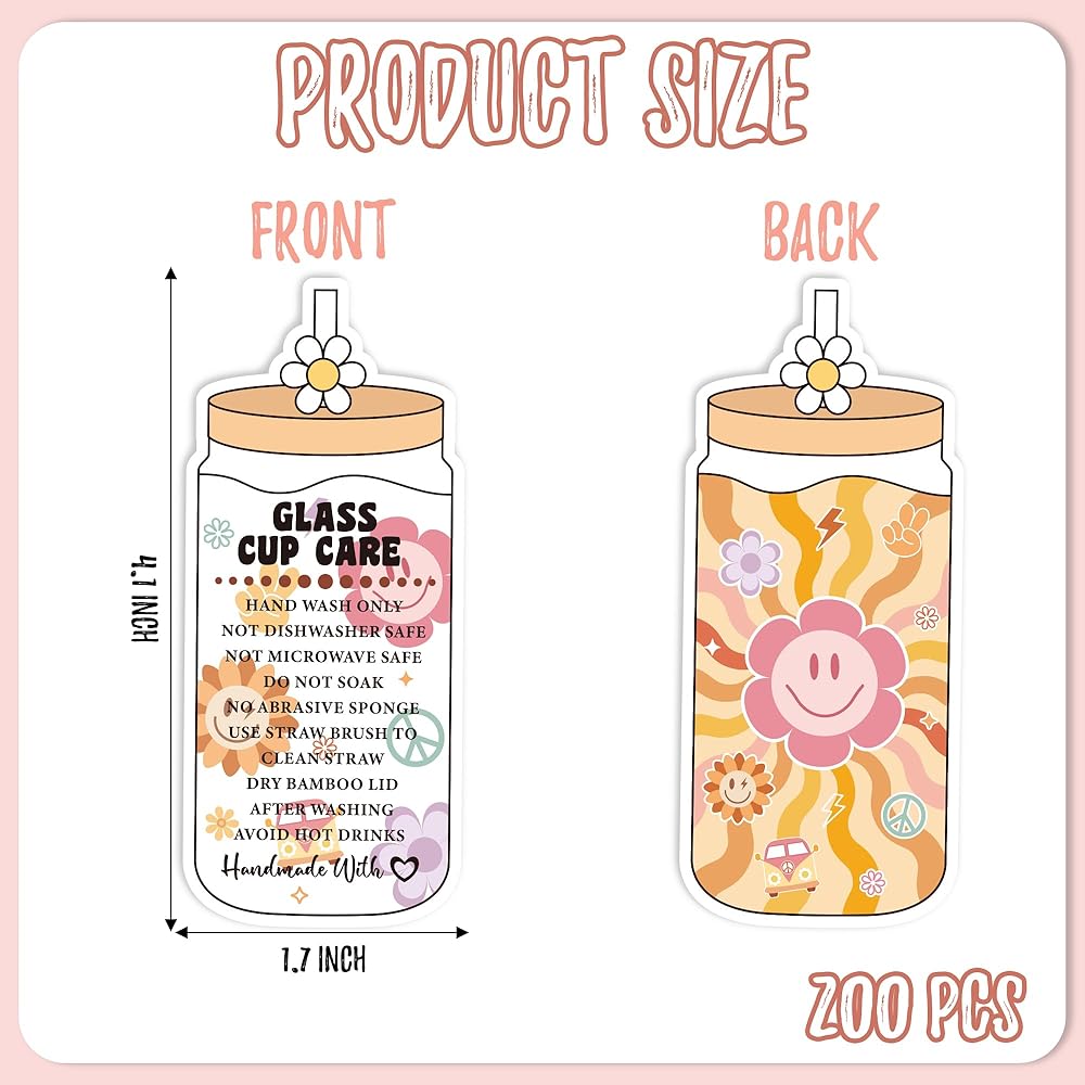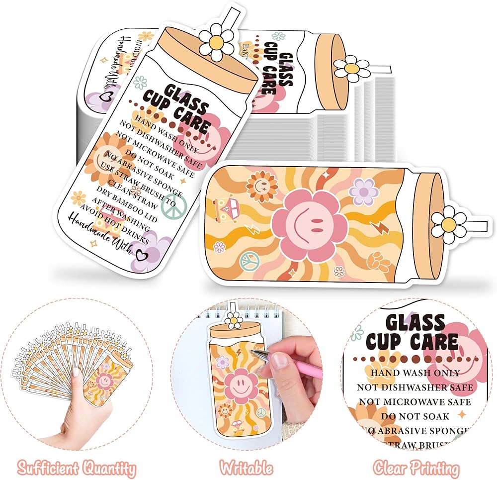 BOpusail 200 قطعة من بطاقات تعليمات العناية بالأكواب، كوب بهلوان، بطاقة تذكير للتنظيف، تصميم موجة الزهور، زجاجة مياه زجاجية للأعمال، بطاقات توجيهات العميل، إدراج حزمة المتجر