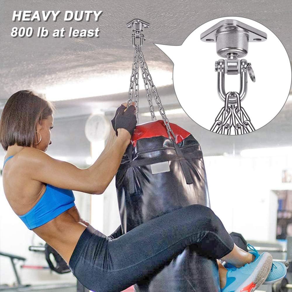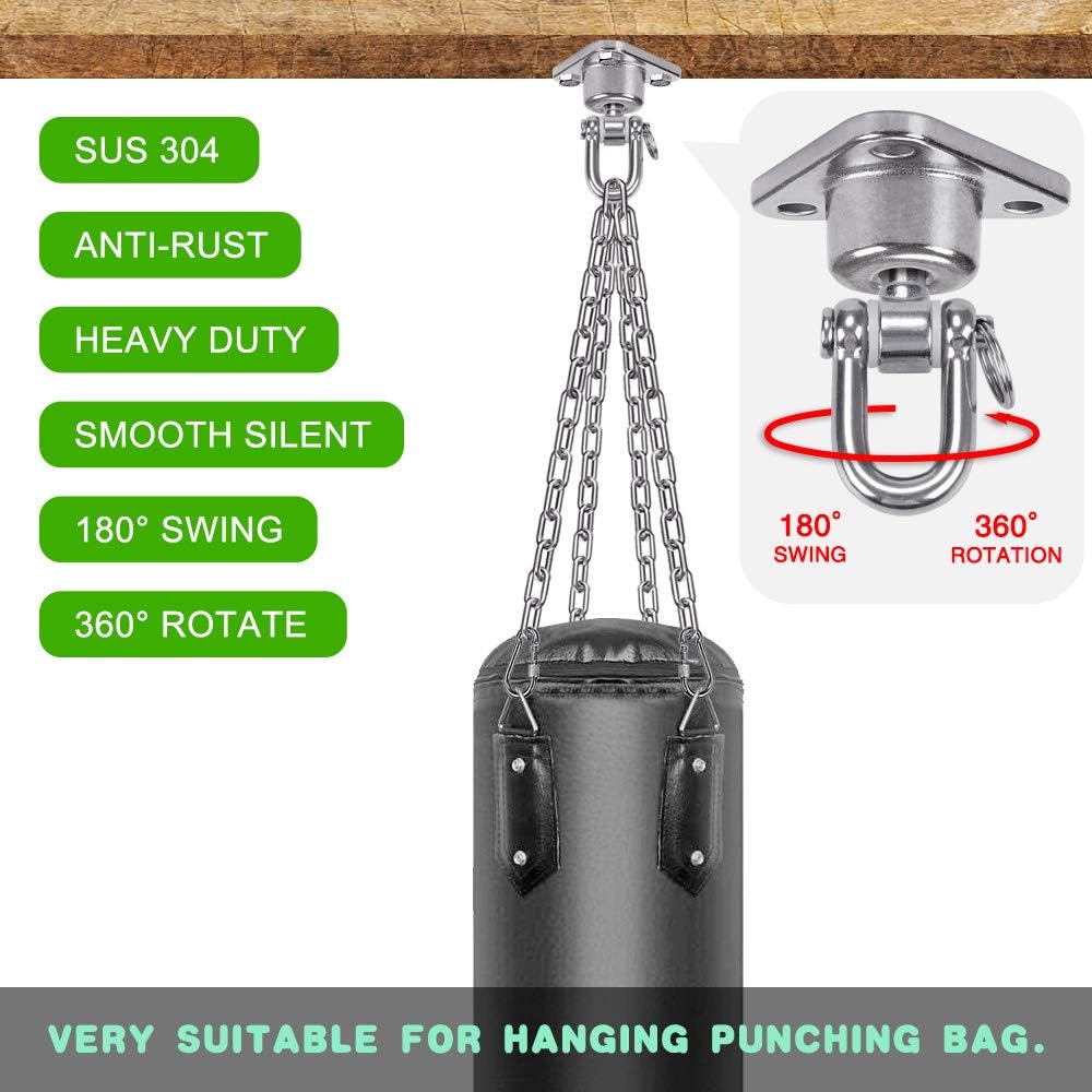 ✔【QUIET SMOOTH DESIGN】: Swivel position using maintenance-free bearing design, with wear-resistant, quiet, smooth special functions, more flexible and quiet 360°Swivel, Very suitable for hanging punching bag, enjoy your favorite cardio and strength building training sessions.