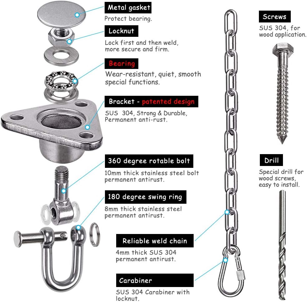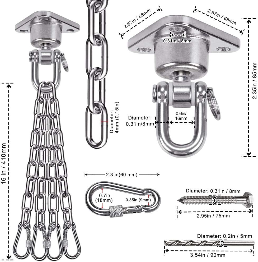 ✔【SIZE & MATERIALS】: Total length is 18.5". Each chain measures 16" long(included the carabiner). Hanger, parts, chains and screws made of stainless steel, permanent rust-proof, safety, environmental protection, non-toxic for indoor and outdoor use.