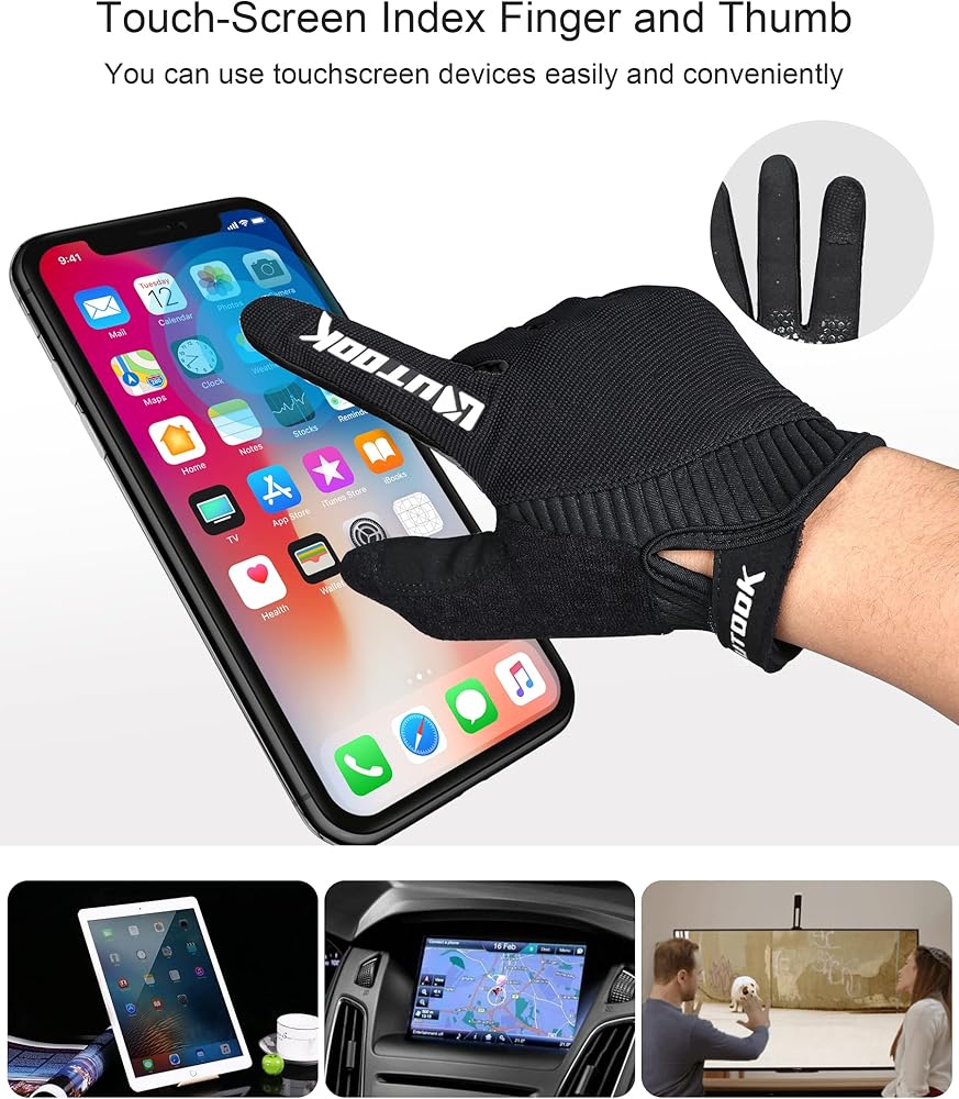 [وظيفة شاشة اللمس] -- قفازات الدراجة ذات الأصابع الكاملة مع وظيفة شاشة اللمس في جزء إصبع السبابة، لن تضطر إلى خلعها للهواتف الذكية الخاصة بك
