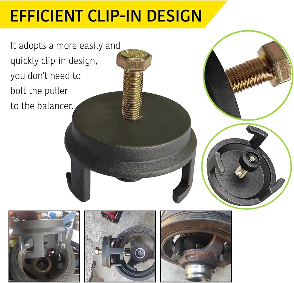 【Efficient Clip-in Design】The crank pulley puller adopts a more easily and quickly clip-in design, you don't need to bolt the puller to the balancer, this efficient design makes it compatible with harmonic balancers without threaded holes.