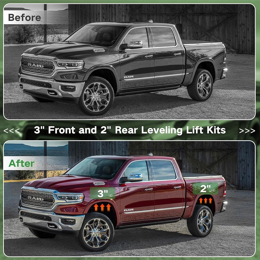 【سهلة التركيب】يمكن إكمال التثبيت خلال 1-2 ساعة ولا حاجة لأي أدوات خاصة. يرجى ملاحظة أن مجموعات الرفع هذه مصممة ليتم تركيبها مباشرة على تعليق مصنع شاحنتك، ولا يوصى بالتكديس.