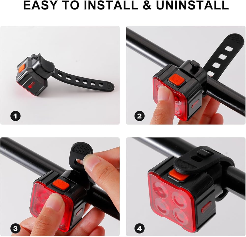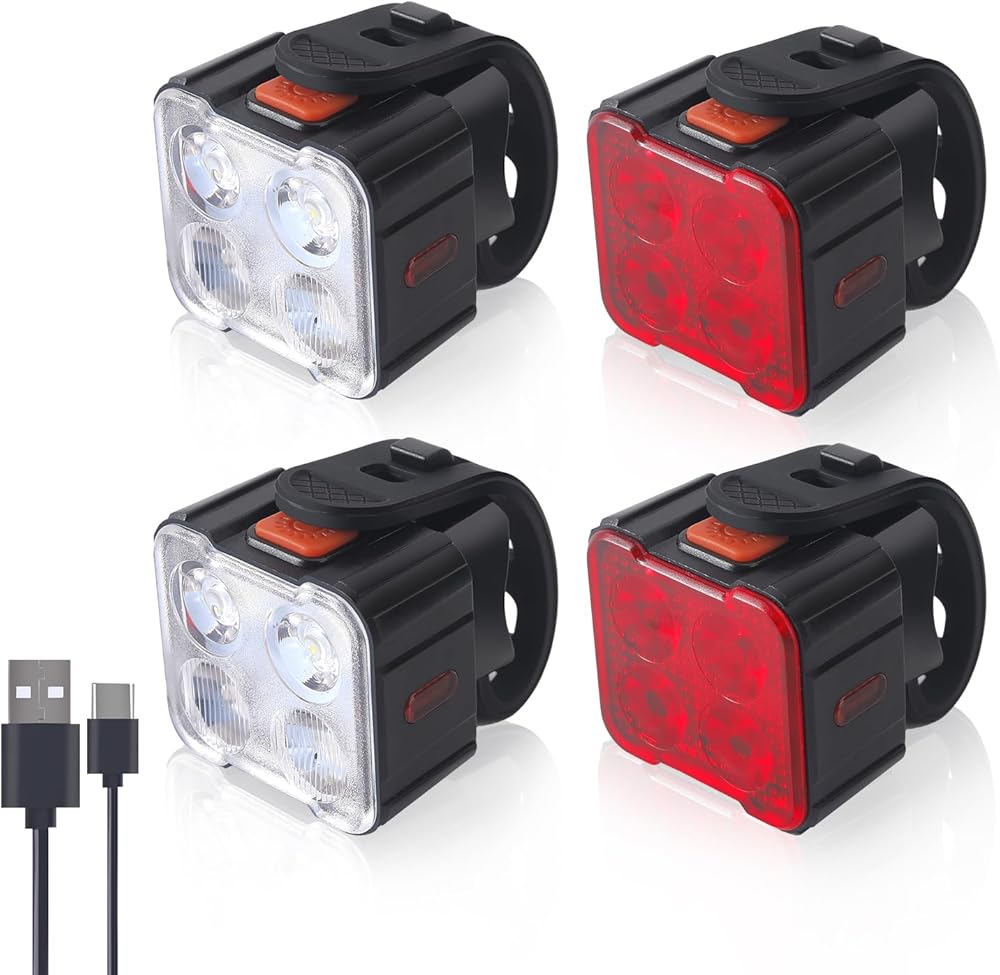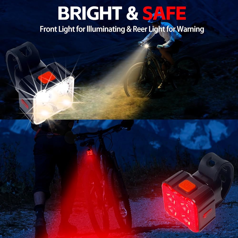 USB Rechargeable Bike Light Set, Powerful Bicycle Front Headlight and Back Taillight, 4 Light Modes, Easy to Install for Men Women Kids Road Mountain Cycling