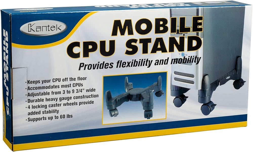 حامل وحدة المعالجة المركزية المحمول من Kantek مع عرض قابل للتعديل وعجلات قفل، عرض 16 بوصة × عمق 7 بوصة × ارتفاع 4.8 بوصة (CS200B)، أسود