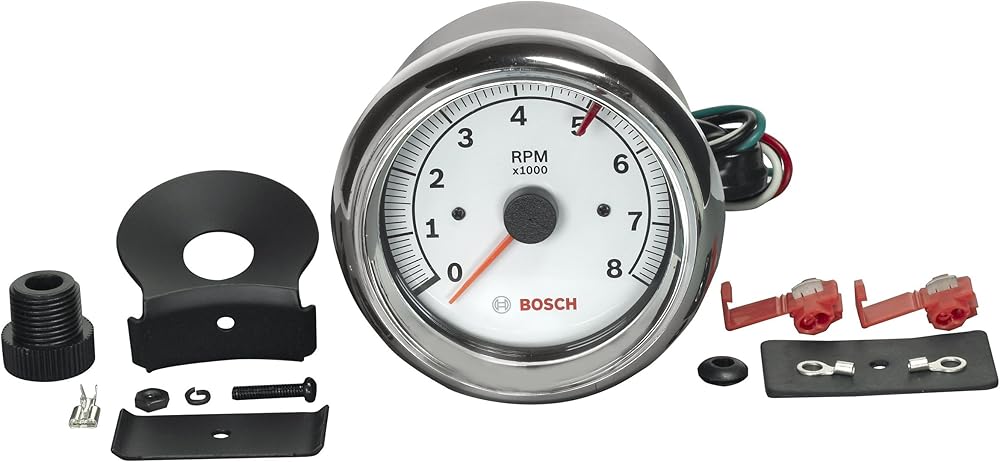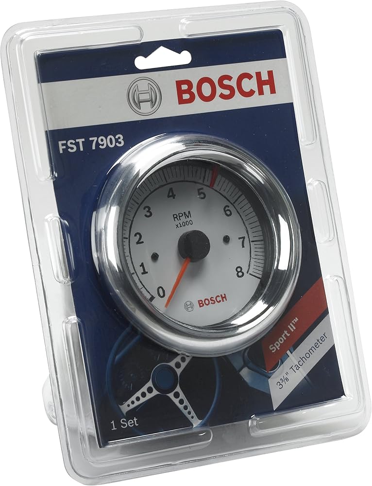 The Bosch SP0F000020 is a Sport II 3-3/8" Tachometer. It features a 0-8000 RPM range, driven by an air core motor. The gauge features a 3-3/8" white dial face with a 250 degree sweep and chrome bezel with mounting hardware. Compatible with 4, 6, and 8 cylinder engines and has an adjustable redline pointer. Functions with breaker points, electronic, and most aftermarket ignition systems (not magnetos). The Sport II Tachometers deliver style and performance while featuring high accuracy with fast needle response for 90% of full scale. Bosch is known for precision, engineering, and innovation. Add style and you have the first-ever line of Bosch gauges, including replacement tachometers, speedometers, temperature and pressure gauges for all applications. Bosch Branded Gauges represent the latest in design following our 100+ year history of Automotive, Industrial, and Racing products.