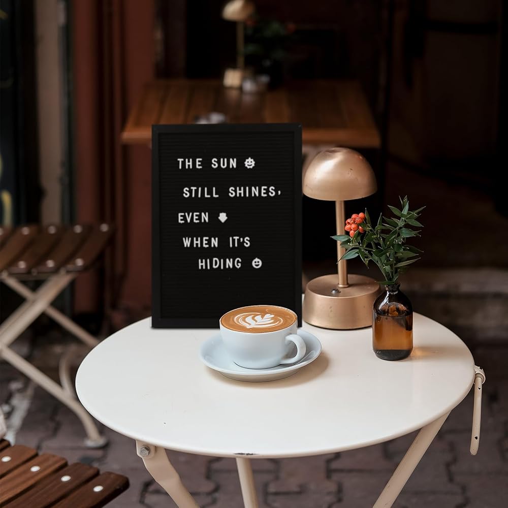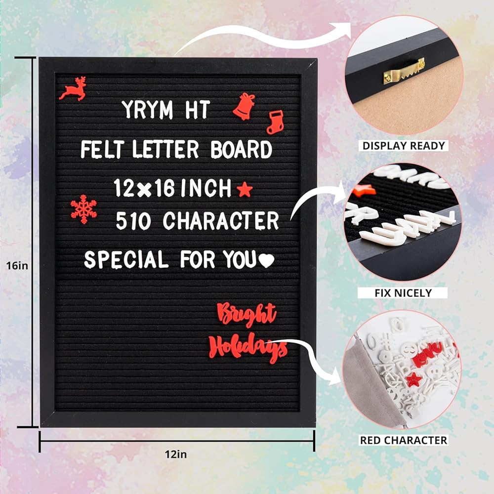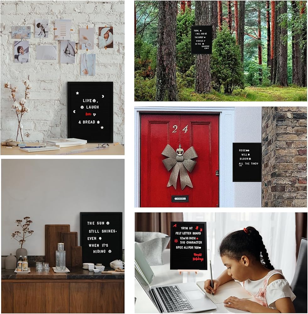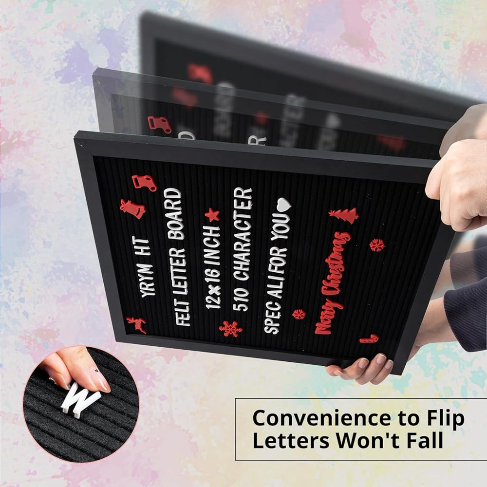 🌟Letter Board🌟 لوحة حروف ملساء مع امتصاص ثابت - تتميز لوحة الحروف مقاس 16 × 12 بوصة بجودة عالية ولباد مضغوط، مما يضمن بقاء الحروف مقاس 3/4 بوصة كما هي ولا تسقط من موضعها. حتى لو قمت بقلب علامة لوحة الرسائل بزاوية 180 درجة ثم قمت بالنقر عليها، فلن تسقط الحروف! تحتوي لوحة الرسائل الخشبية هذه على إطارات سوداء صلبة ولباد أسود ناعم وقوي مصمم ليدوم طويلاً.