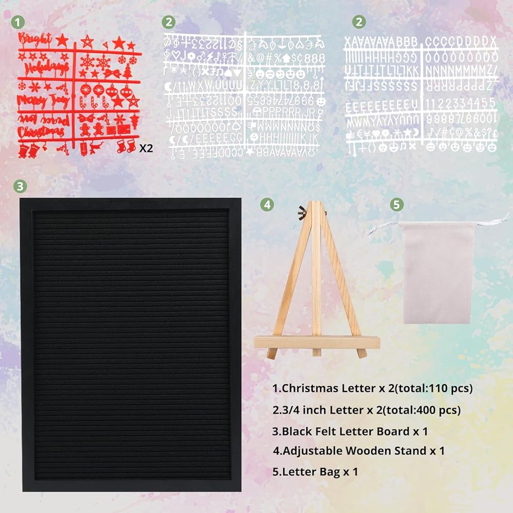 📚لوحة الرسائل📚 510 حروف وشخصيات وأرقام ورموز ورموز تعبيرية قابلة للتغيير مقطوعة مسبقًا - لوحة رسائل تحتوي على 400 قطعة من الأحرف البيضاء مقاس 3/4 بوصة و110 قطعة من الشخصيات الحمراء لعيد الميلاد يمكنها الإشارة إلى الكلمات المهمة لتوصيل رسائلك بشكل فعال والتعبير عن رسائلك بوضوح في أي مكان. أين أنت. تأتي لافتة لوحة الحروف في حقيبة تخزين واحدة مجانية للمساعدة في جمع الحروف. دلل إبداعك الأدبي مع لوحة الحروف اللبادية.
