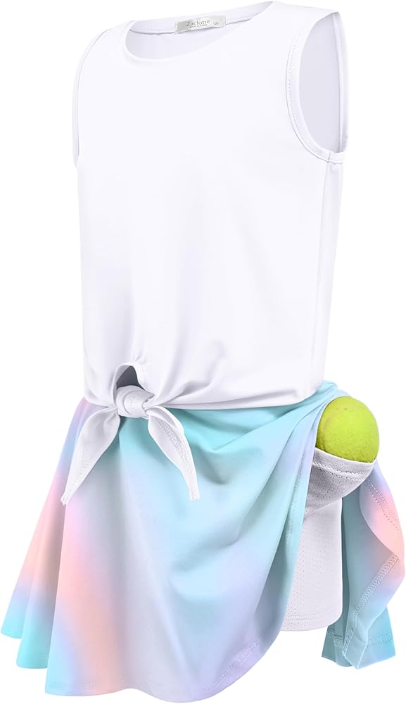 طقم تنورة جولف للفتيات وقميص بدون أكمام: زي التنس للفتيات يأتي مع قميص بدون أكمام بعقدة ربطة وتنورة سكورت مع جيوب. مزيج من الألوان الزاهية وصبغات التعادل، قميص قصير بدون أكمام مع حاشية ربط قابلة للتعديل، اجعل الشكل ضيقًا أو فضفاضًا كما تريد. وتنورة بتصميم على شكل حرف A تجعل الفتيات أكثر أناقة