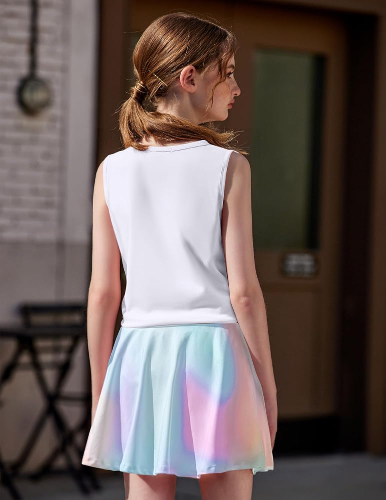 خامة احترافية: فستان التنس للفتيات مصنوع من نسيج قابل للتمدد وجيد التهوية في 4 اتجاهات، لا يمكن رؤيته من خلاله، ولا يبهت بسبب صبغات الربط والألوان الزاهية. نسيج سريع الجفاف وخفيف الوزن يحافظ على راحة أطفالك وبرودتهم أثناء الأنشطة