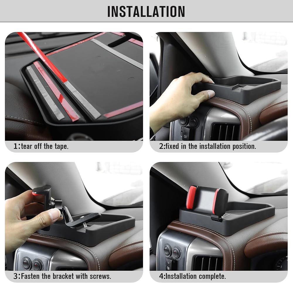 مساحة تخزين إضافية: أضف مساحة تخزين إضافية للأشياء الصغيرة مثل المناشف الورقية والنظارات الشمسية والهواتف المحمولة والتغييرات وغيرها من العناصر الصغيرة. سوف توفر الملحقات الداخلية لحامل الهاتف على لوحة القيادة المزيد من الراحة والراحة