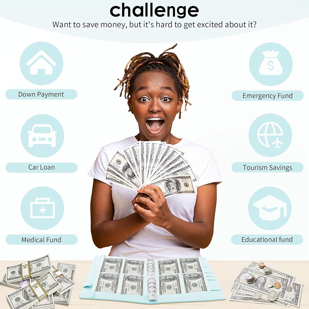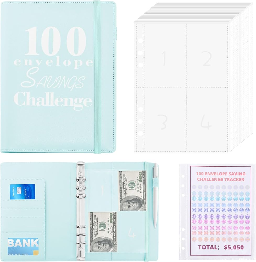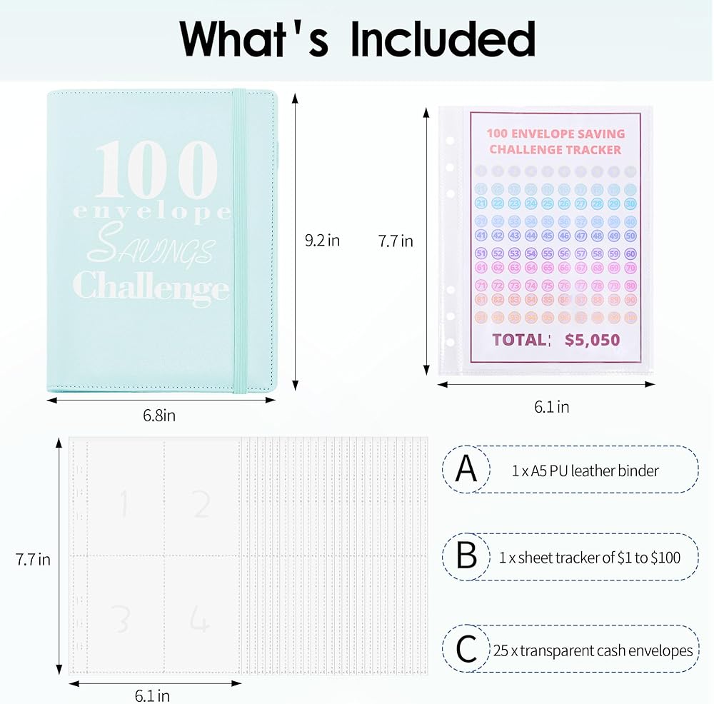 ما تحصل عليه: 1 غلاف من جلد البولي يوريثان مقاس A5، و100 فتحة ظرف نقدي شفاف من مادة PVC، وملصق واحد شفاف من 1 إلى 100، و1 متتبع ورق بقيمة 1 دولار إلى 100 دولار. يمكن أن يساعدك مجلد توفير المال هذا على إنشاء صندوق ادخار للطوارئ وتنمية عادات الادخار طوال تحدي توفير المال بأكمله.
