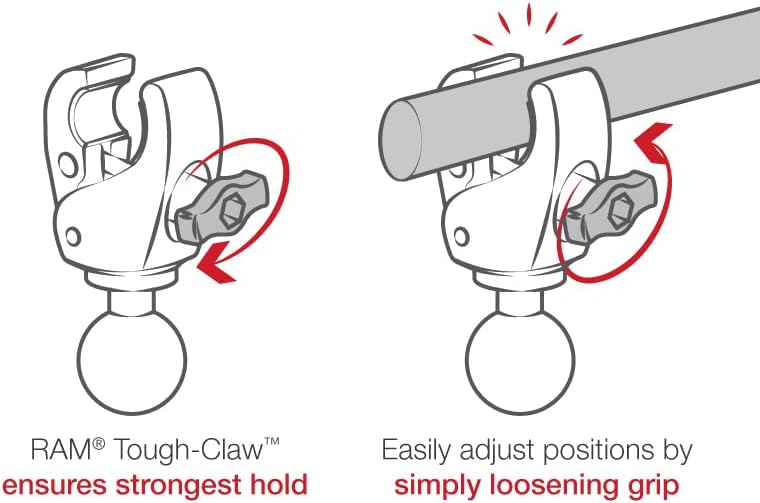 تم تصميم قاعدة Tough-Claw الصغيرة من ذاكرة الوصول العشوائي (RAM) للتثبيت بسرعة على القضبان والقضبان الدائرية والمربعة والغريبة الشكل التي يتراوح قطرها الخارجي من 0.625 بوصة إلى 1.14 بوصة؛ توفر الوسادات المطاطية قبضة ثابتة وحماية لسطح التركيب