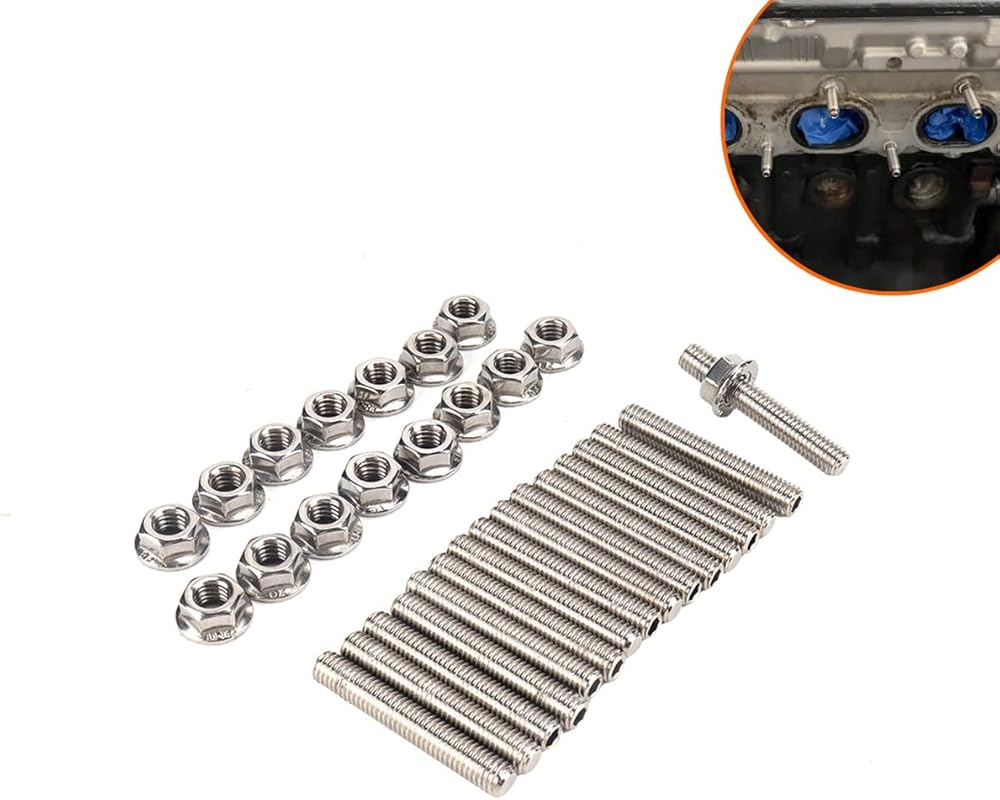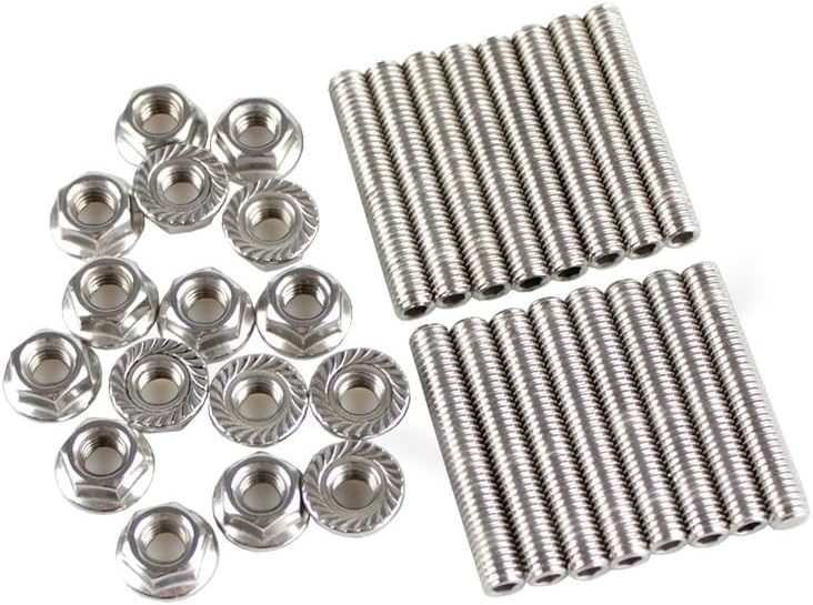 Exhaust manifold studs and nuts kit is made of high standard 304 stainless steel,heat-treated for enhancing its stable performance and durability.Wear resistance, anti-rust and corruption resistance.