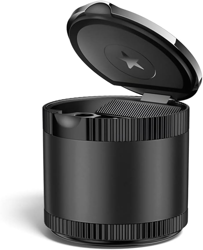 【Durable Material】: Ashtray cup holder is made of aluminum alloy and flame retardant material, with excellent heat resistance and chemical stability. Cigarette butt contact doesn't leave a trace. The button can be opened or closed with one hand. It is very easy to use.