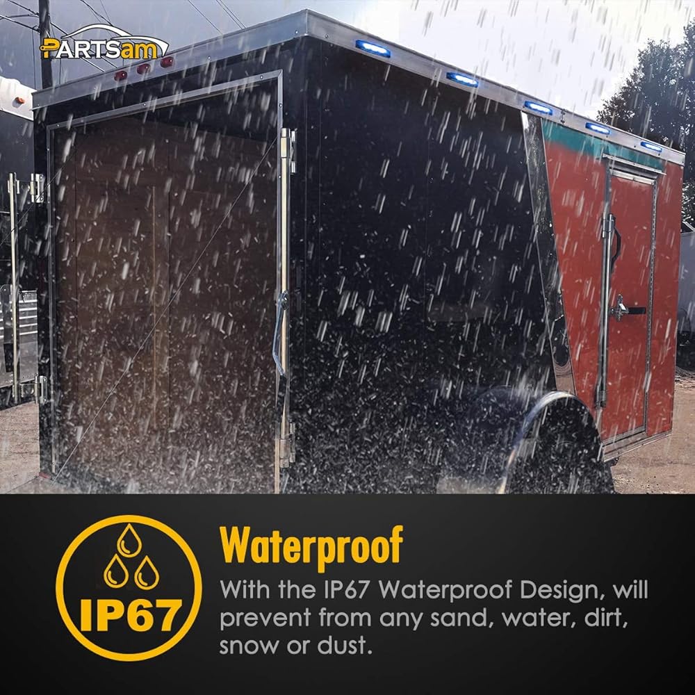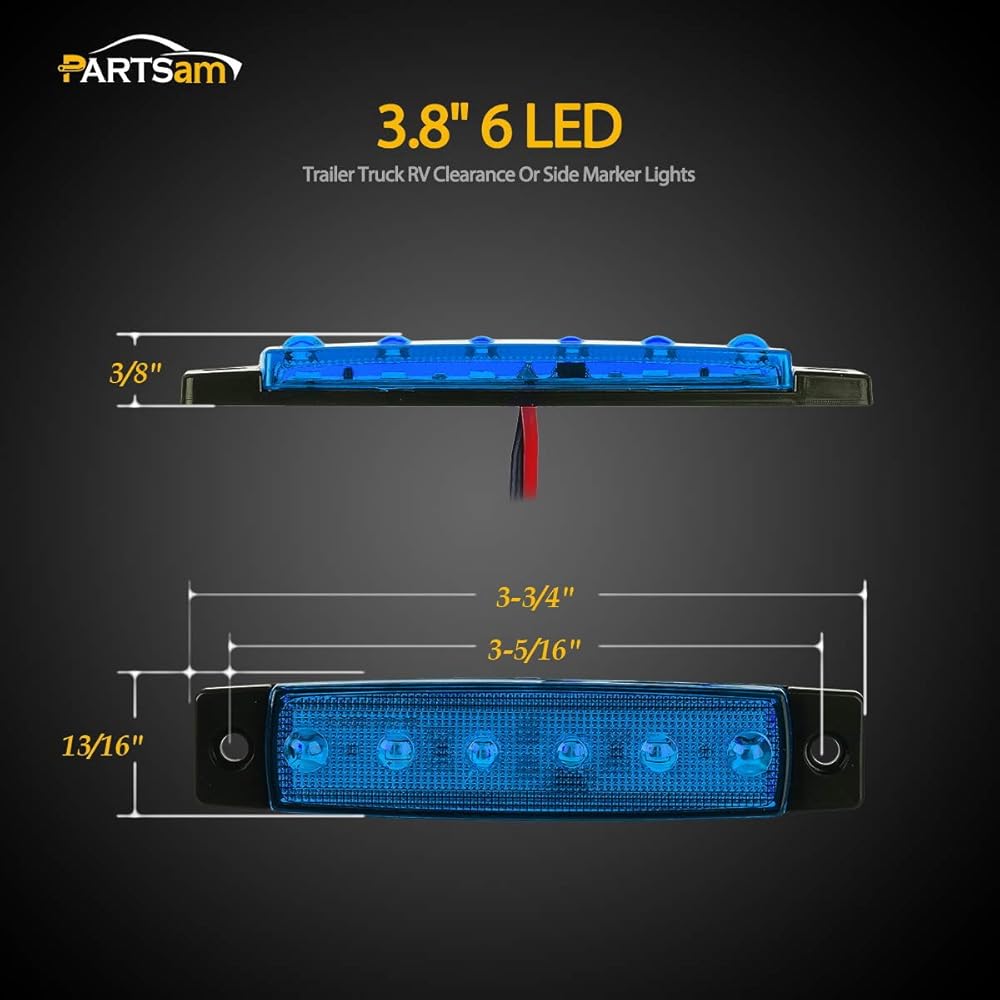 تتضمن الحزمة 10 قطع 3.8 بوصة أضواء علامة مقطورة LED زرقاء 6LED؛ يتم تضمين مسامير مجانية وقواعد الشريط الرغوي. تُستخدم قواعد الشريط الرغوي للالتصاق بالجزء الخلفي من مصابيح التحديد الزرقاء أو بالسطح الذي سيتم تركيب الضوء الأزرق عليه، من أجل العزل المائي. كما يمكنك استخدام مادة لاصقة قوية قليلاً للتأكد؛
