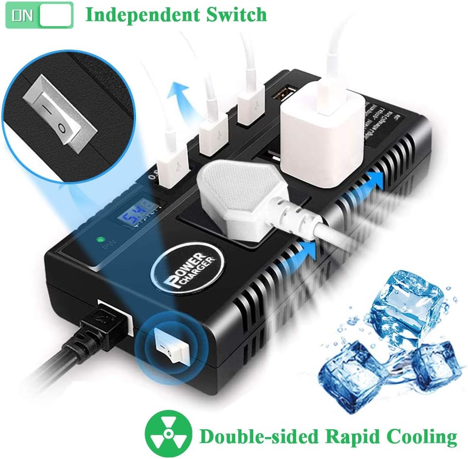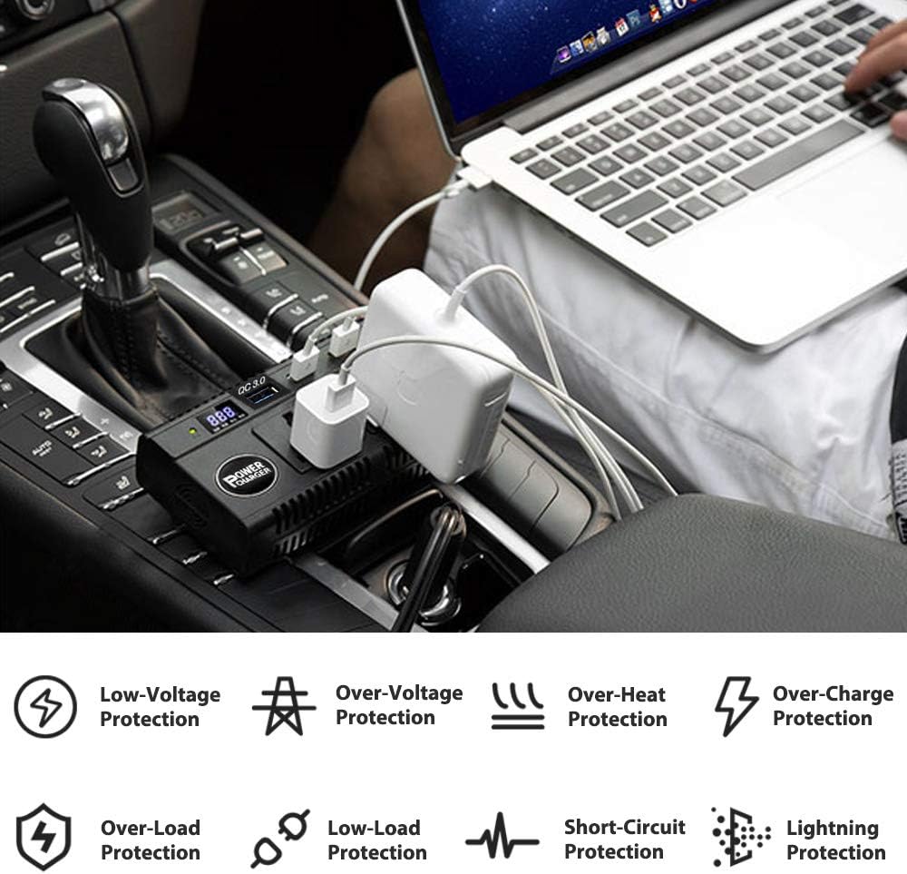 🌟آمن ومريح: يتيح لك مفتاح التحكم والمراقبة السهل بدء وإيقاف تدفق التيار إلى المحول. يمكن للشاشة الذكية اكتشاف وعرض درجة حرارة السيارة وطاقة البطارية وجهد USB والتيار تلقائيًا.