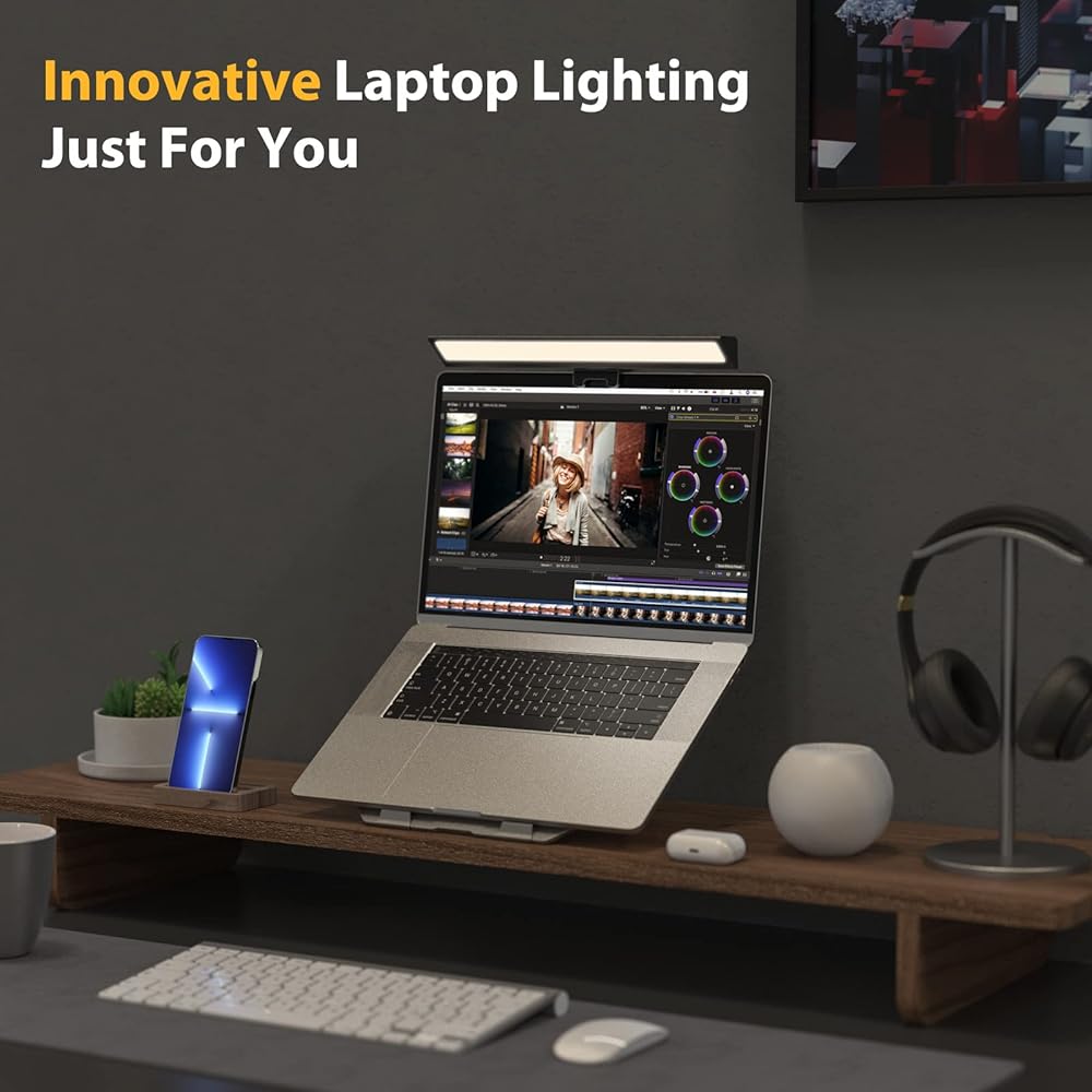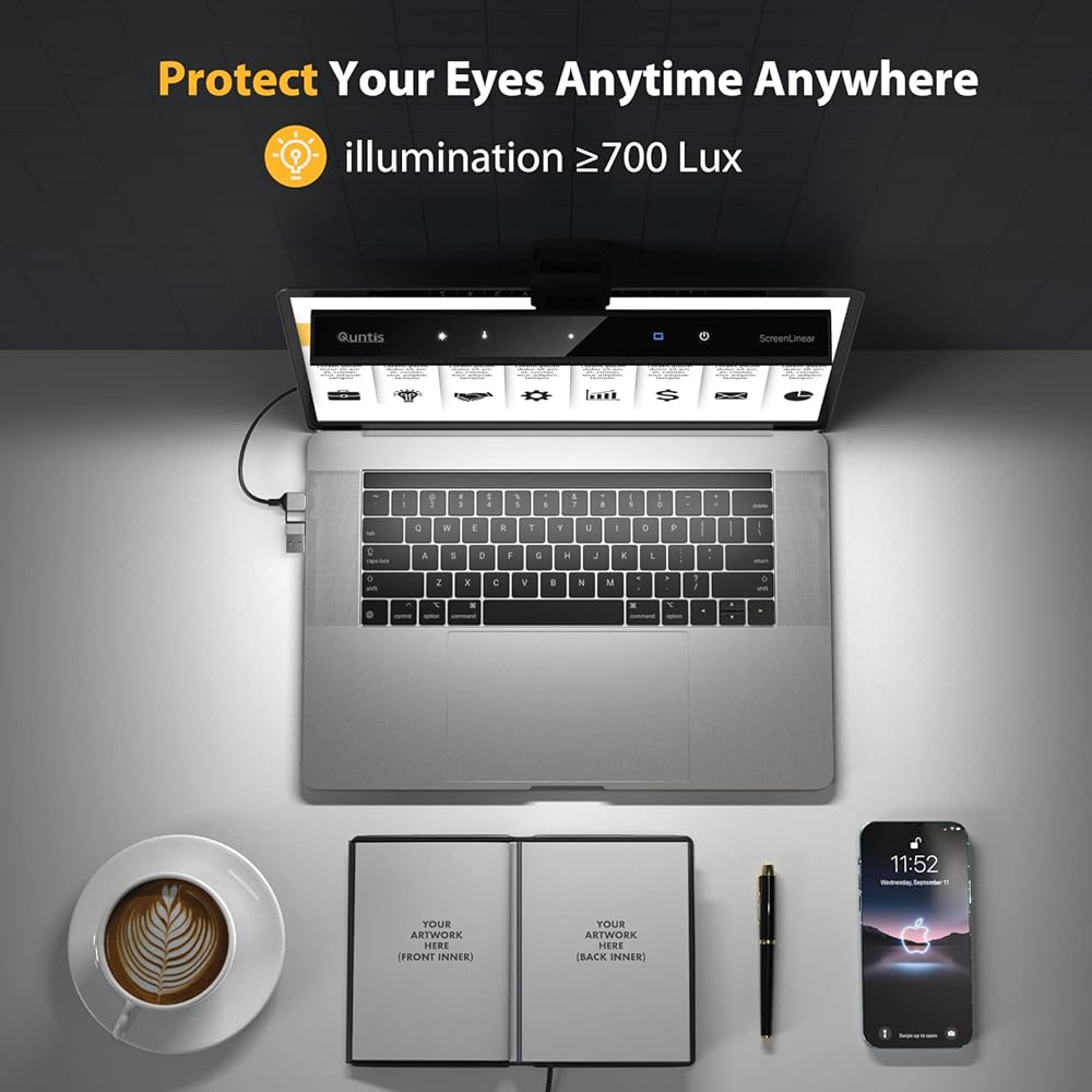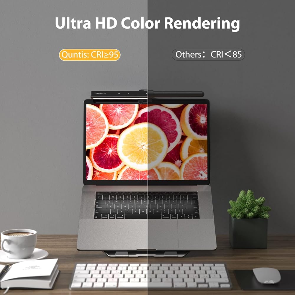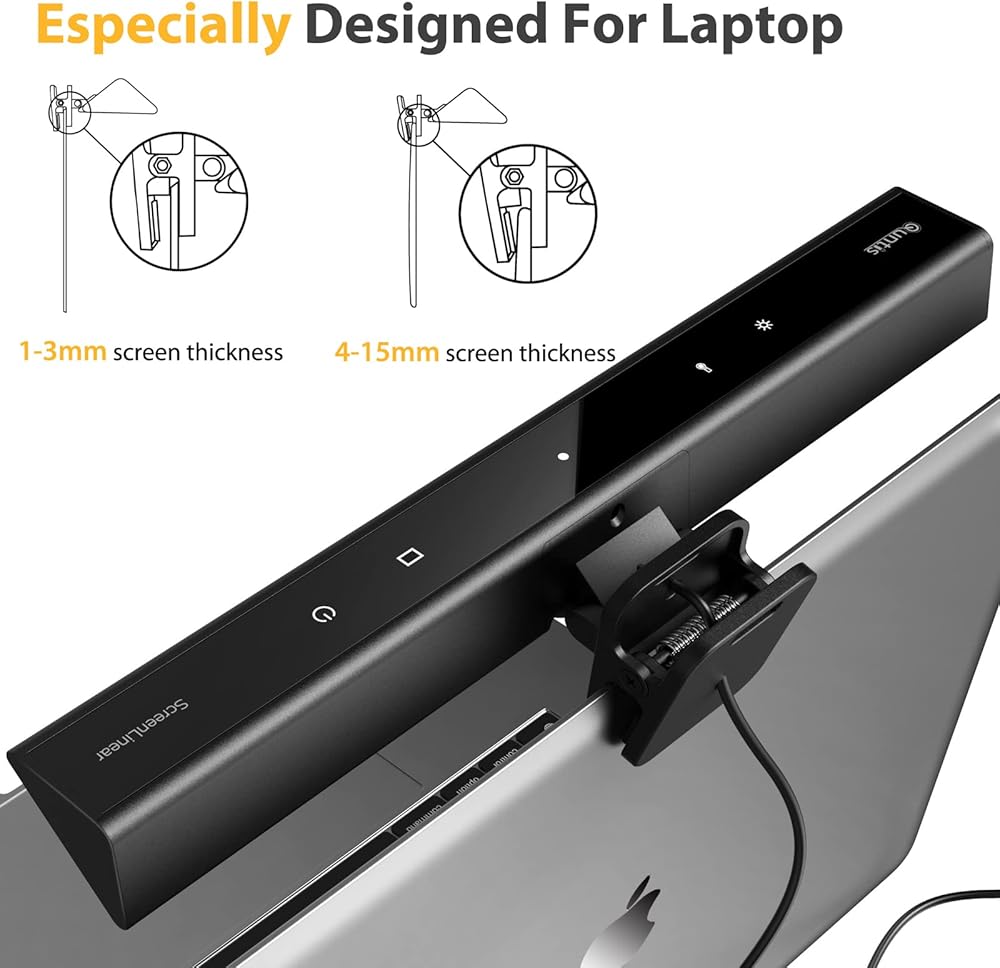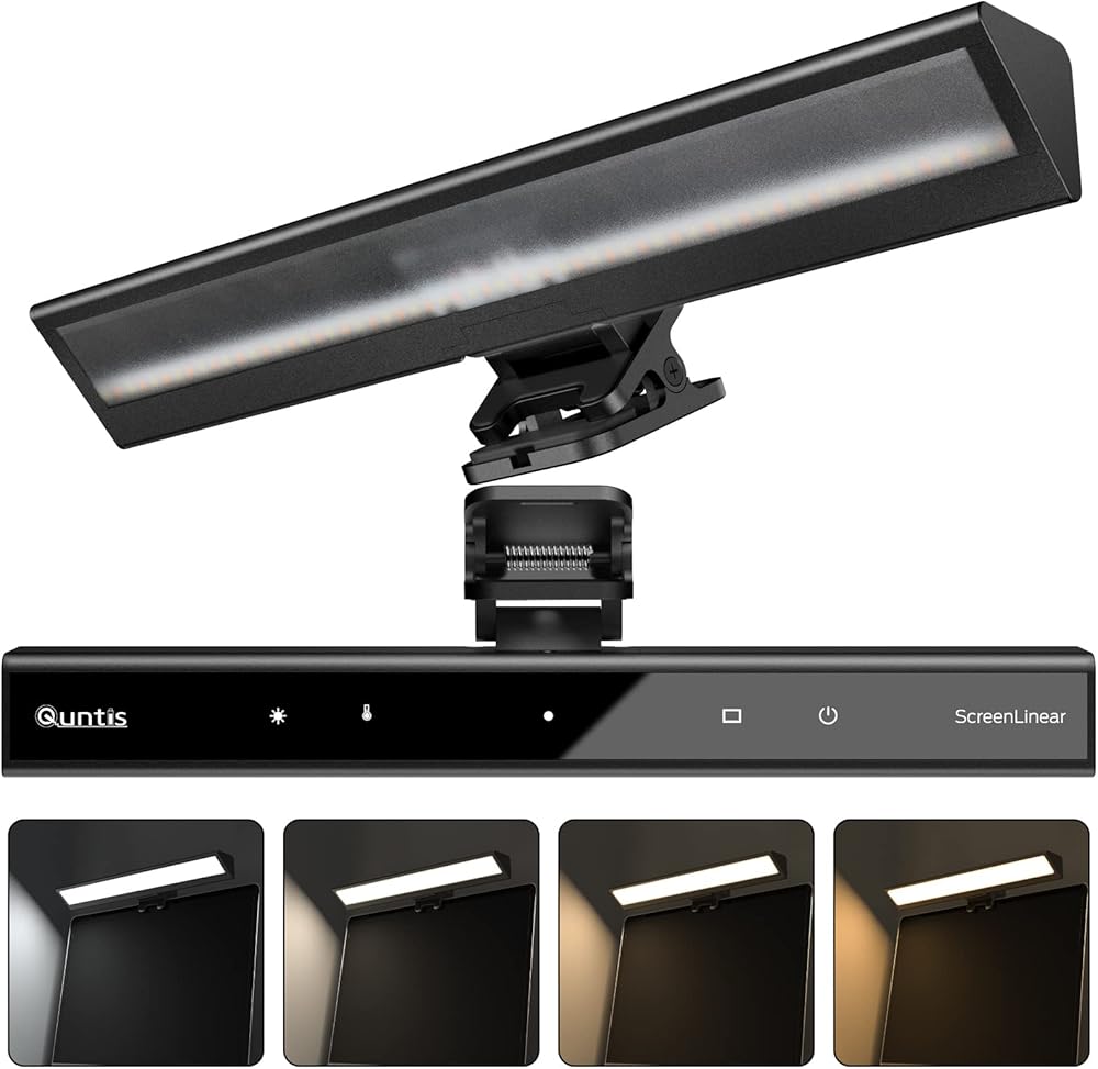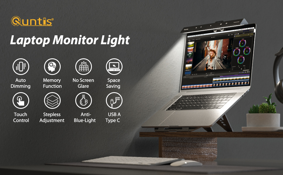 شريط ضوء شاشة الكمبيوتر المحمول Quntis، شريط ضوء شاشة الكمبيوتر المحمول مع التعتيم التلقائي، التحكم باللمس و4 درجات حرارة ألوان قابلة للتعديل، بدون وهج الشاشة، العناية بالعين، توفير المساحة، محمول للمكتب/السفر/المنزل