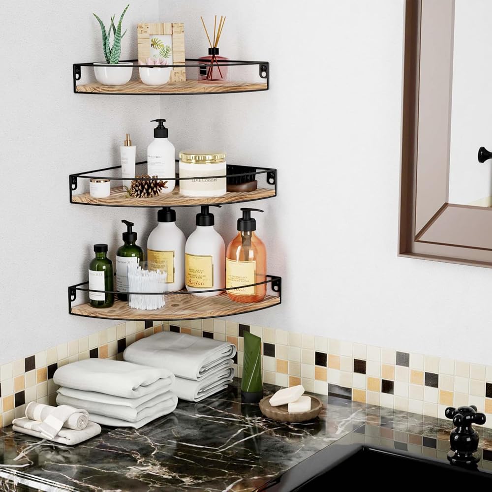 【تناسب كل زاوية تقريبًا】استخدمها كرف للحمام لتخزين أدوات التجميل. استخدمه كرف مطبخ لتخزين زجاجات التوابل. استخدمه كرف لغرفة النوم للصور. ضع رف الزاوية في المدخل لعرض نمط المعرض