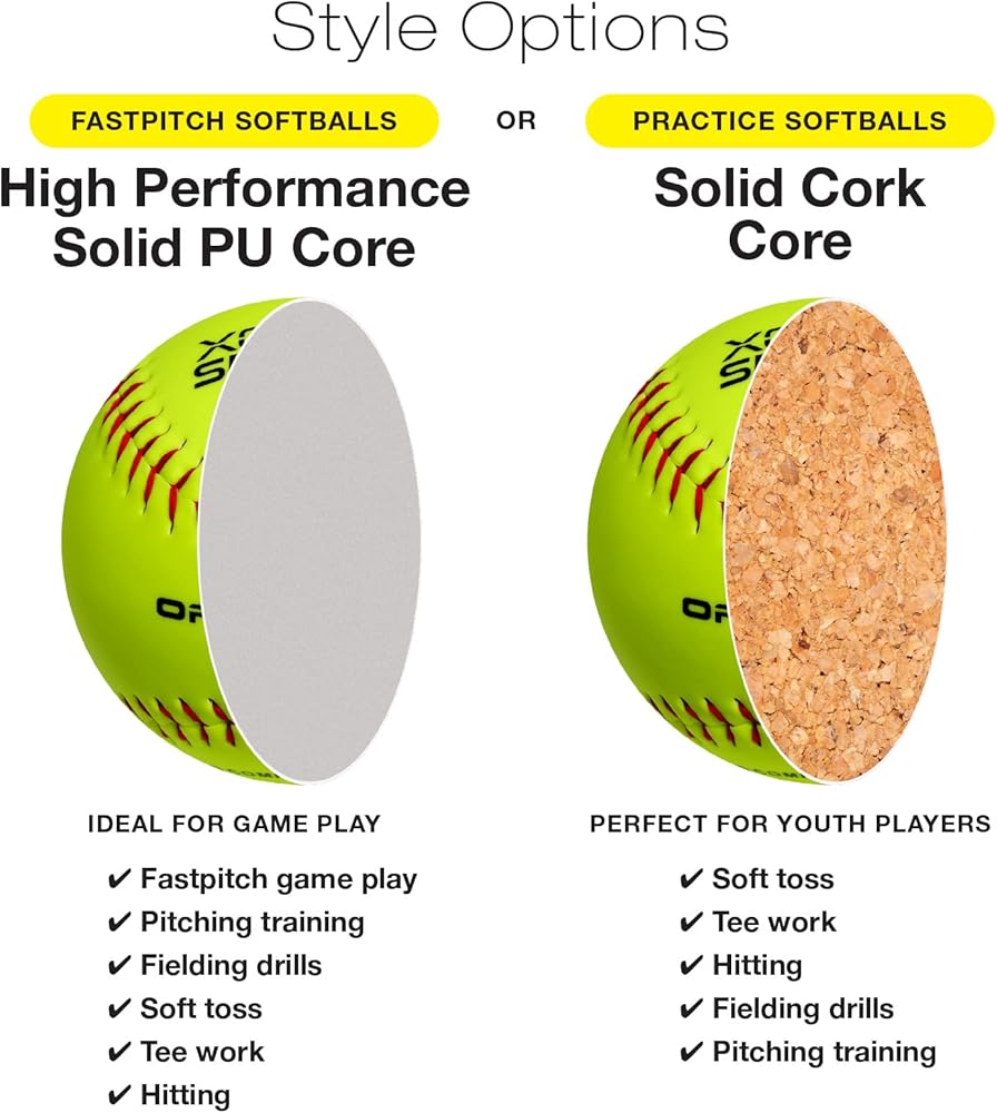 FASTPITCH - تتميز الكرات اللينة Fastpitch الخاصة بنا بقلب من البولي يوريثين الصلب عالي الأداء مما يجعلها رائعة للألعاب!