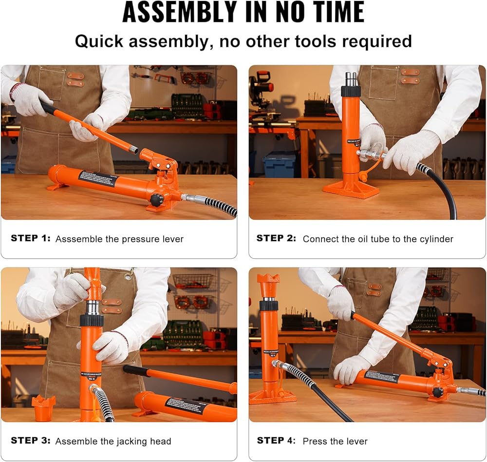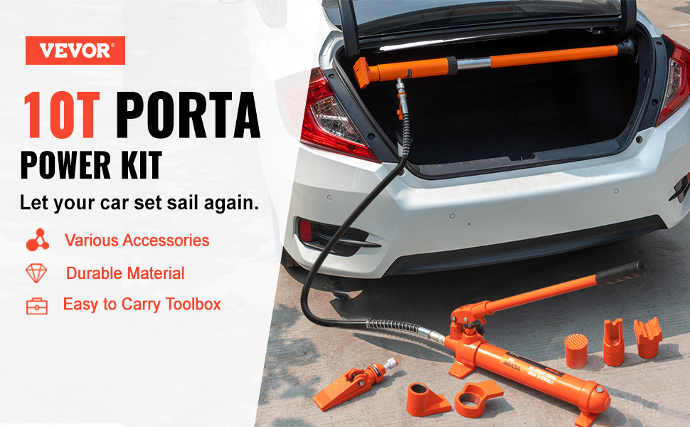 VEVOR Porta-Power set provides extra capacity for the harshest tasks. This heavy-duty set makes all bull-work repairs easier. Perfect for pressing, spreading, lifting, straightening & clamping panels, and painting workshops and collision repair centers.