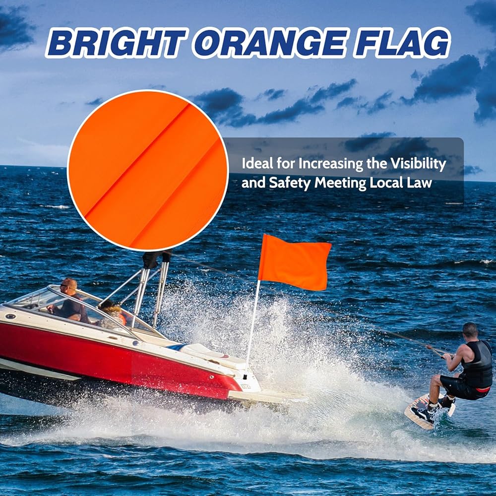 علم Hmeyomy البرتقالي لعلم سلامة القوارب 48 بوصة، 12 × 18 بوصة علم التزلج على الماء مع 3 أقطاب، علم متزلج قابل للطفو للأسفل للقوارب، أعلام القوارب للأنابيب والرياضات المائية