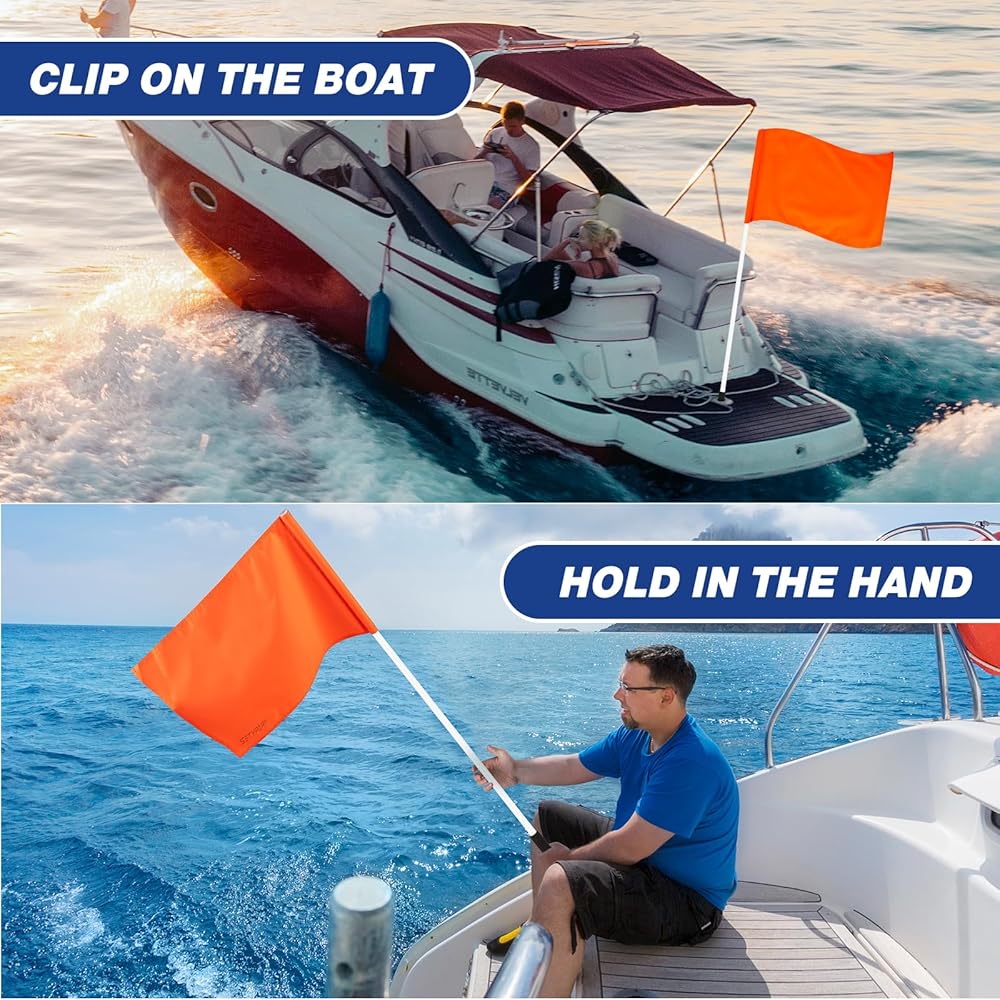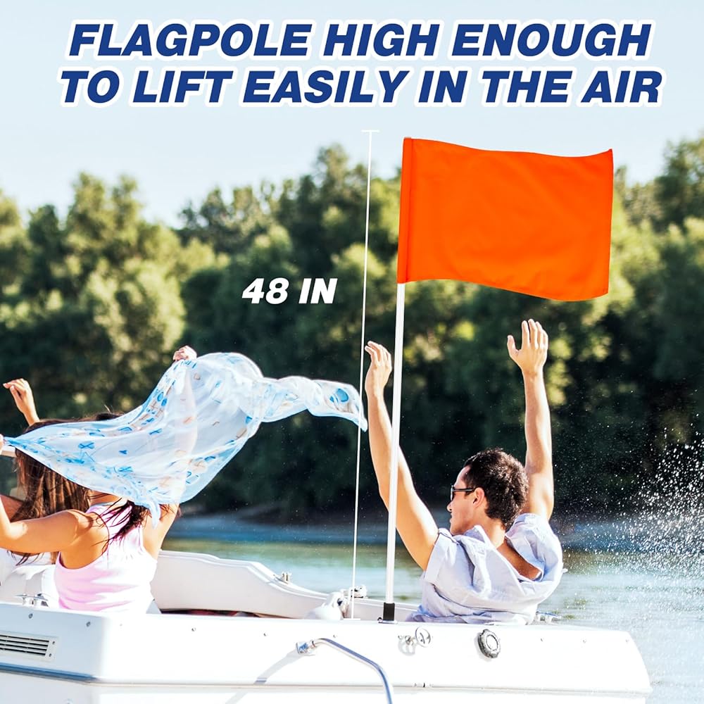 نابض بالحياة وقانوني: لا يلبي علم سلامة القارب البرتقالي الزاهي المتطلبات القانونية في العديد من الولايات (AZ، CA، CO، ID، MO، NE، NM، OR، TX، UT، وWA) ولكنه يضمن أيضًا رؤية أفضل على الماء. .