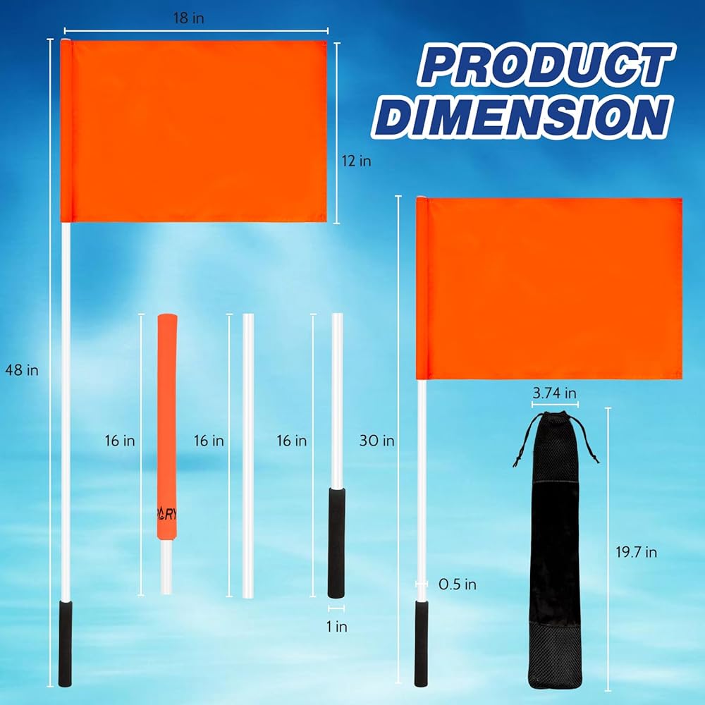 قبضة مريحة: استمتع بقبضة آمنة مع المقبض السميك المصنوع من أسيتات إيثيلين-فاينيل (EVA). يضمن الهيكل خفيف الوزن، إلى جانب سارية العلم مقاس 48 بوصة، تجربة مريحة أثناء استخدام علم سحب القارب.