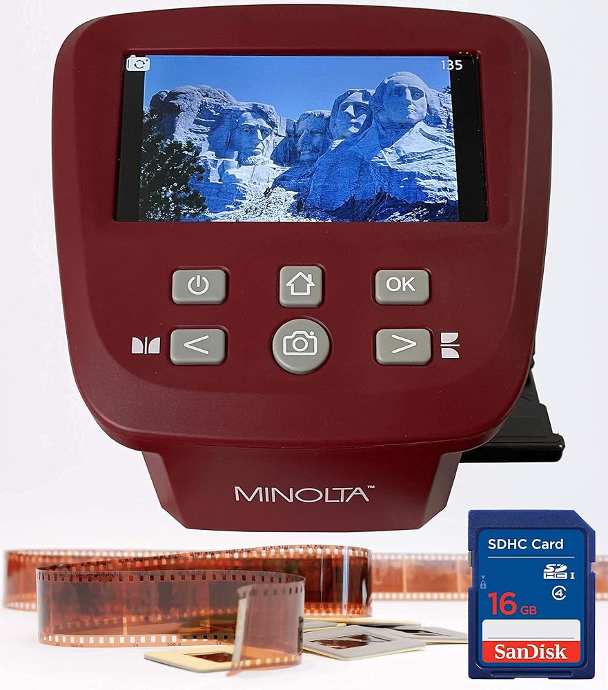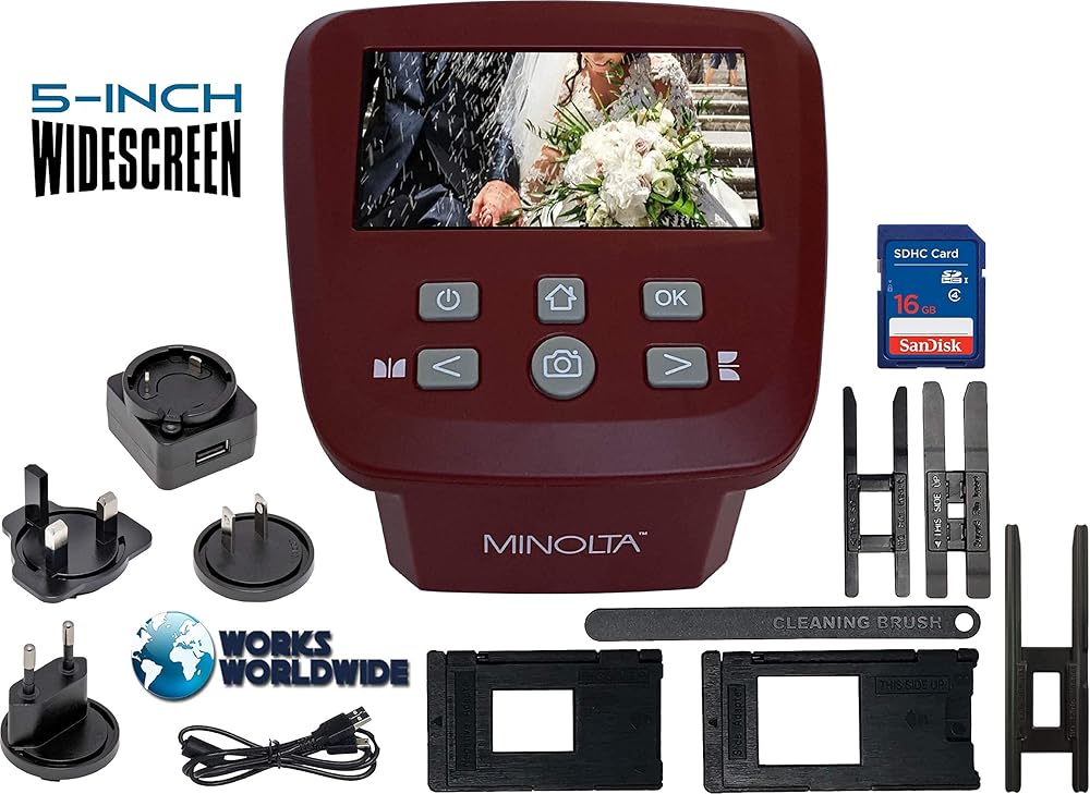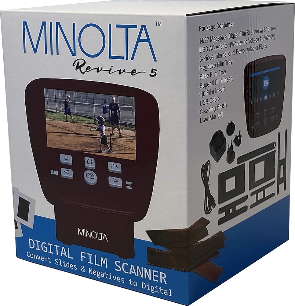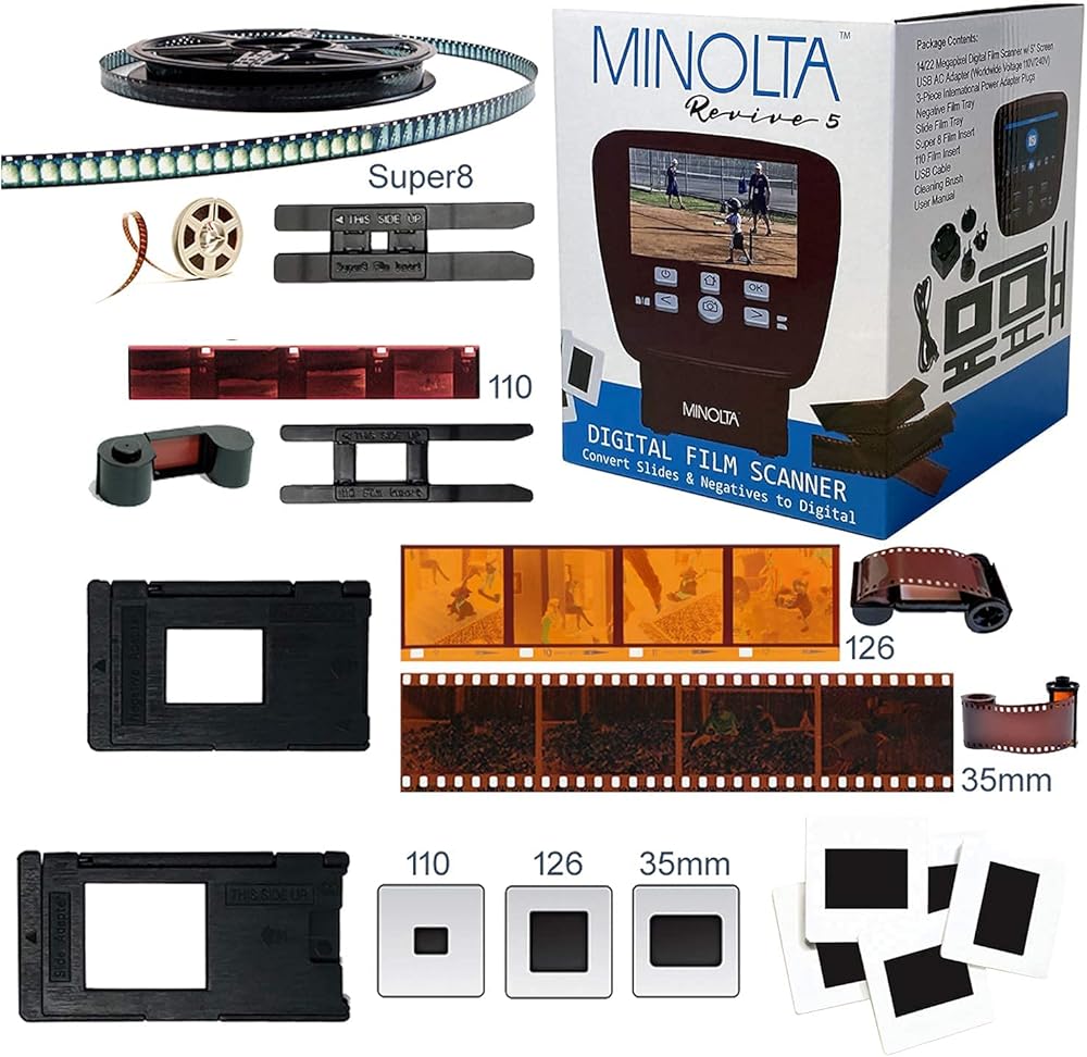 AMAZING HIGH RESOLUTION FILM TO JPEG IN SECONDS - MINOLTA Revive 5 Digital Film Scanner EASILY CONVERT COLOR and B&W 35mm, 126, 110 Negative & Slides, Super 8 Films to High Resolution 22MP JPEG Digital Photos Film to JPEG to "Revive" Your Old Slides & Negatives